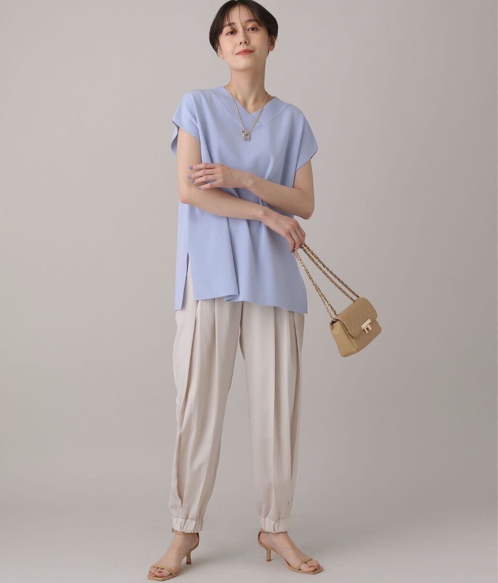 落ち感のある素材なのでニットやカットソーなどのハリのある素材との相性が◎