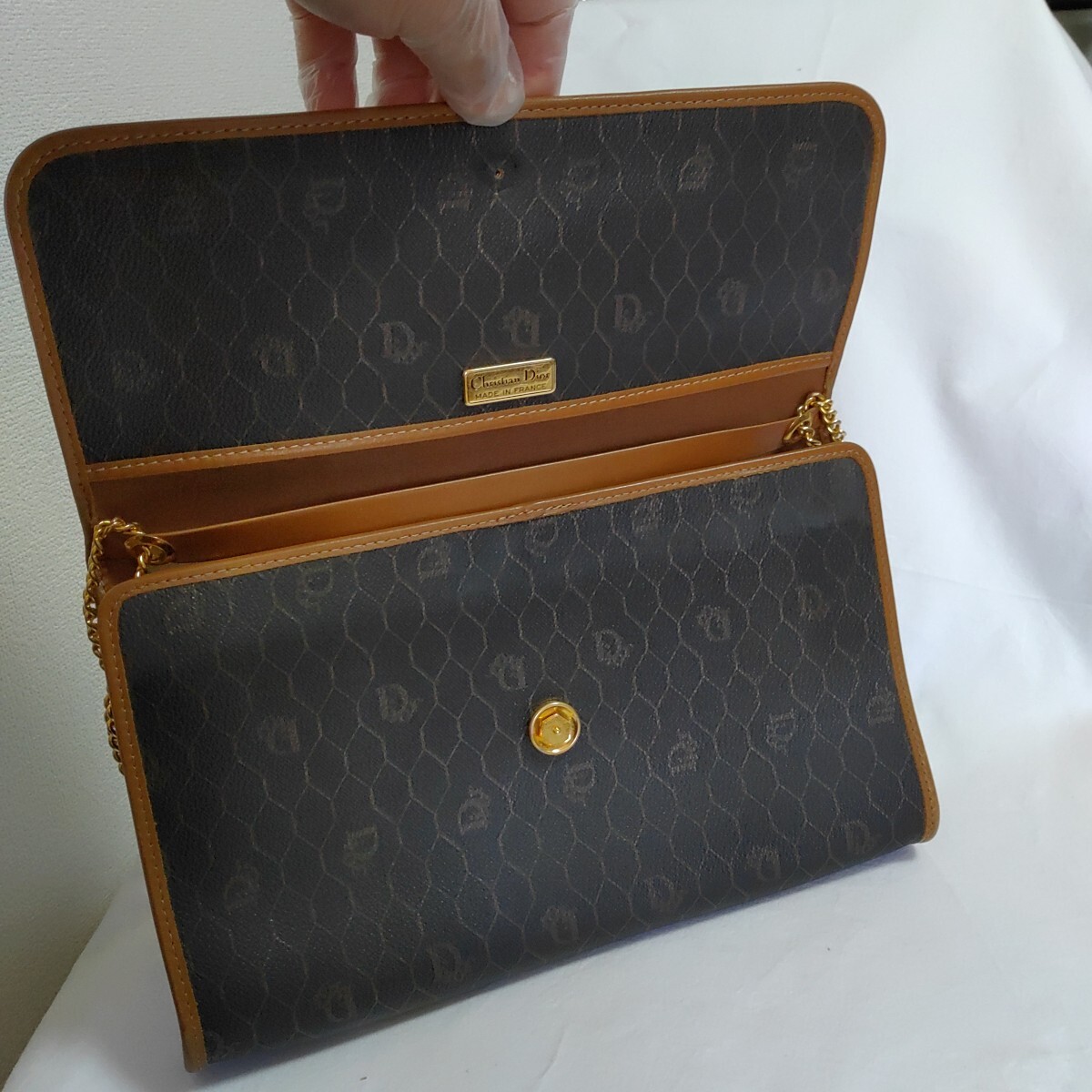 Christian Dior ディオール ハニカム ショルダーバッグ 金 ゴールド 茶 ブラウン チェーン 0416-F2-TA8