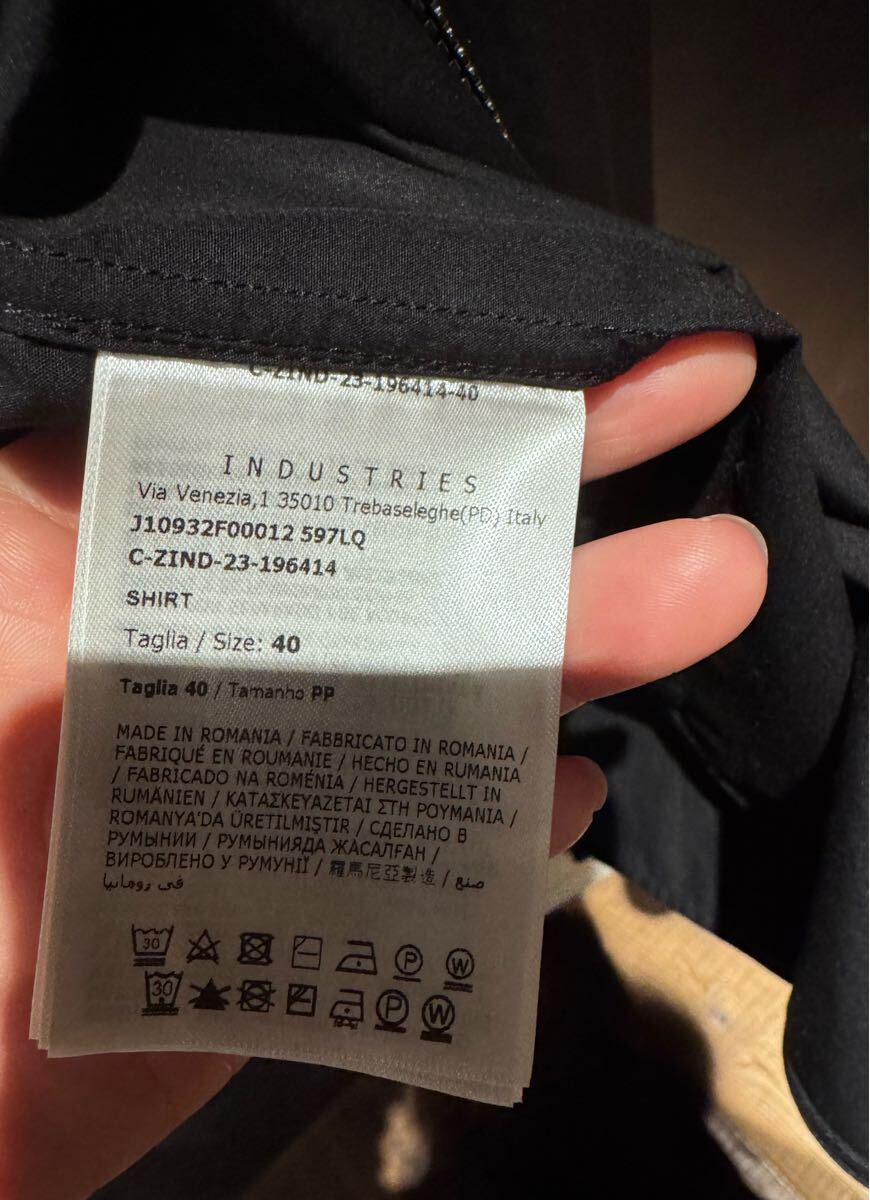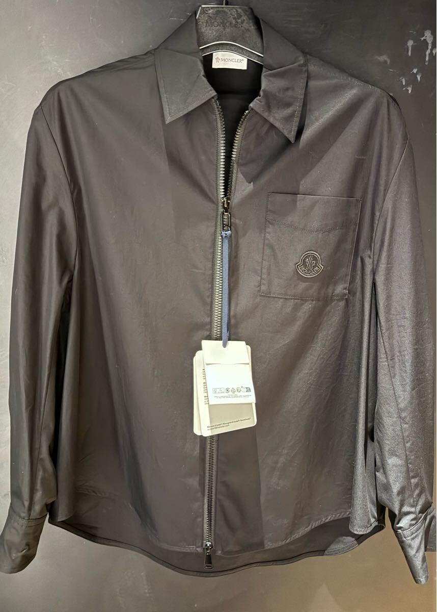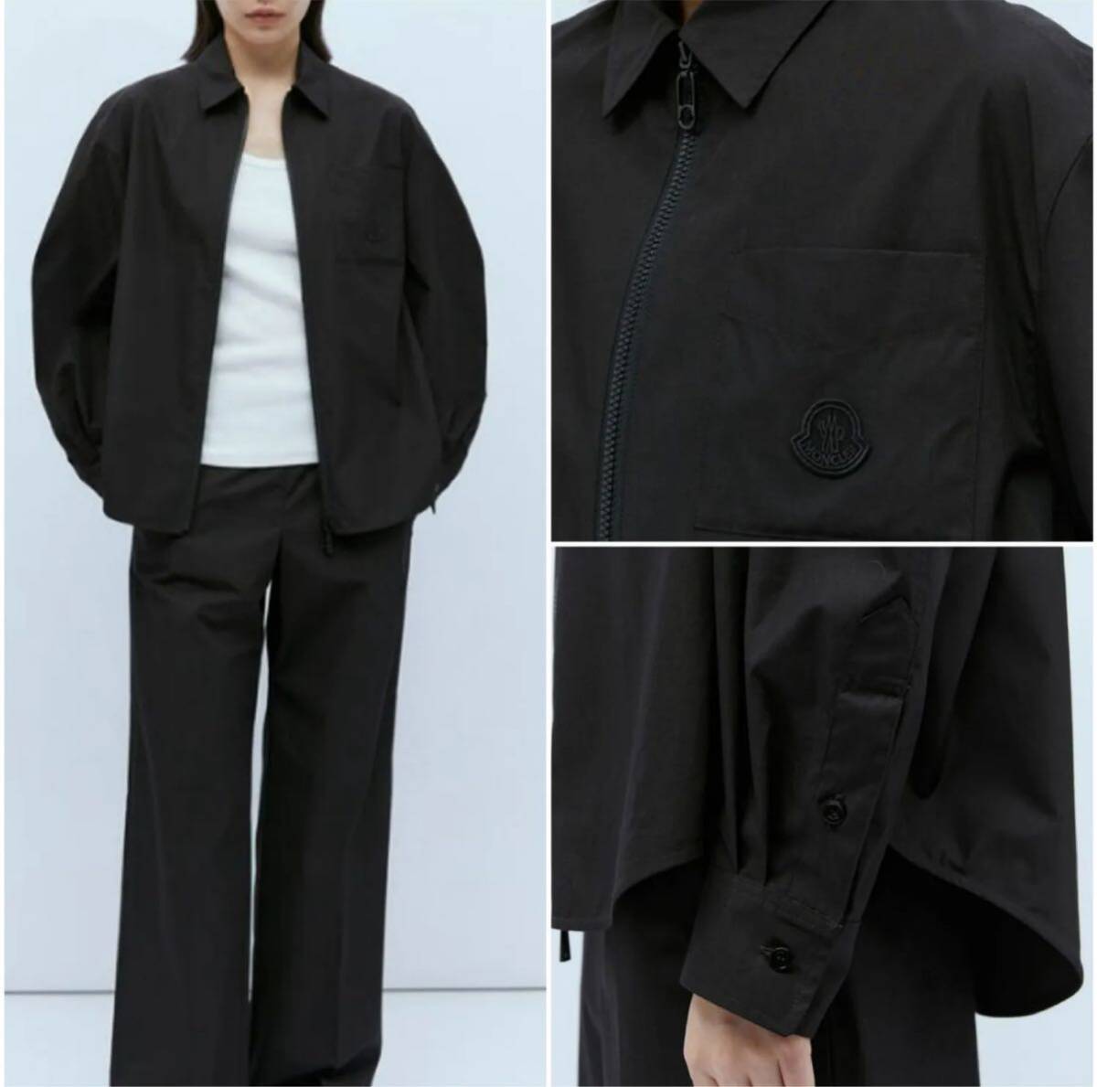 オーバーサイズの黒シャツ、フロントポケット付き。