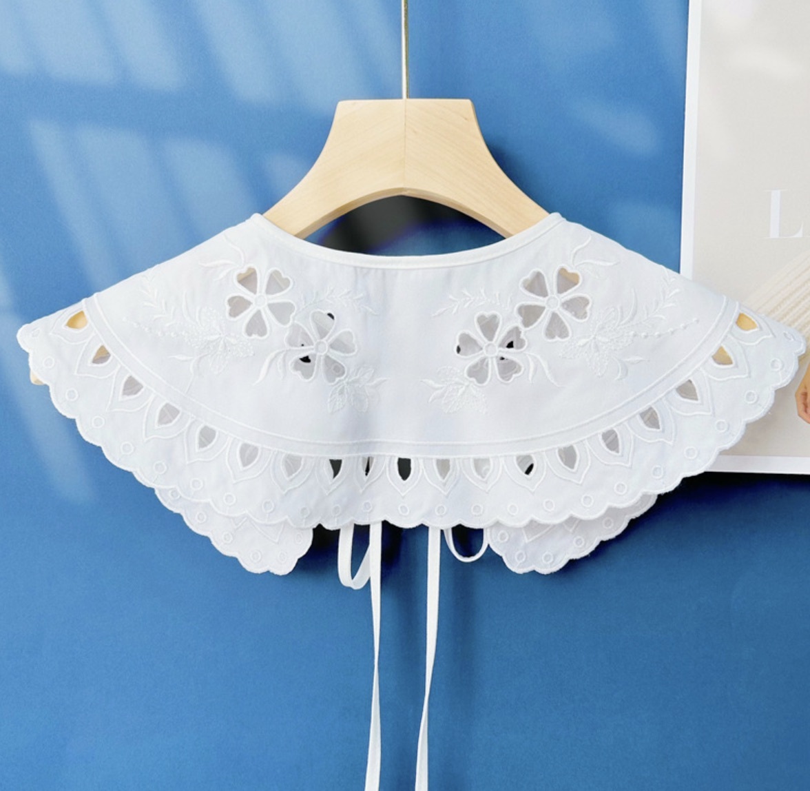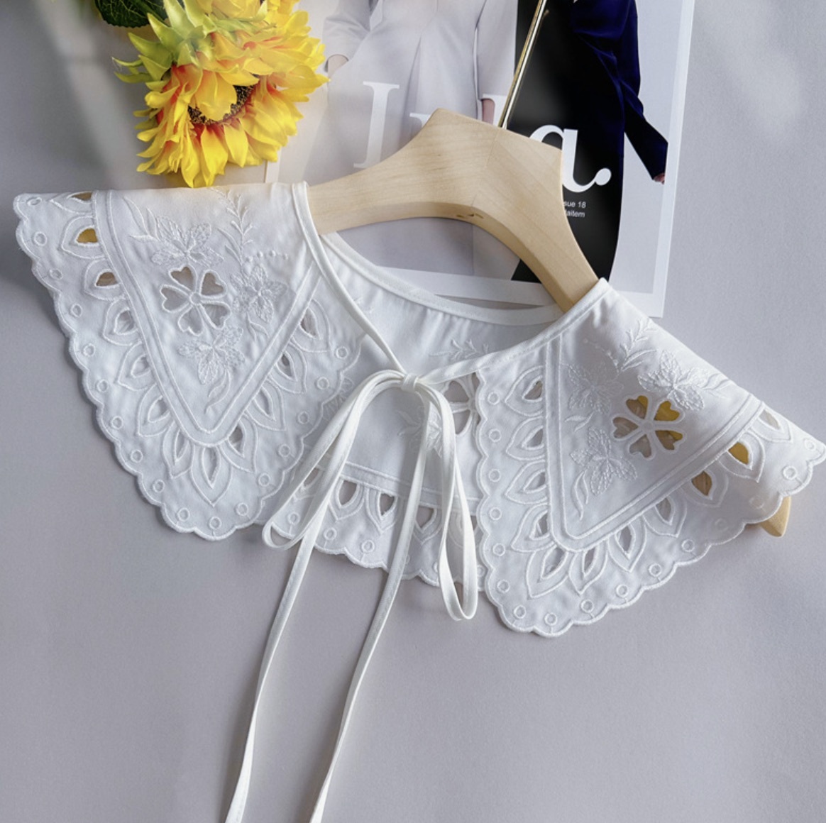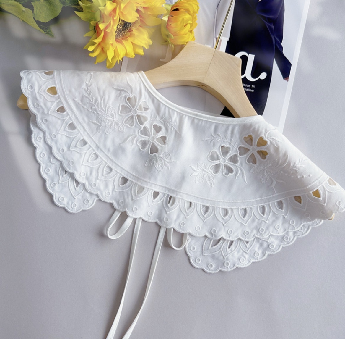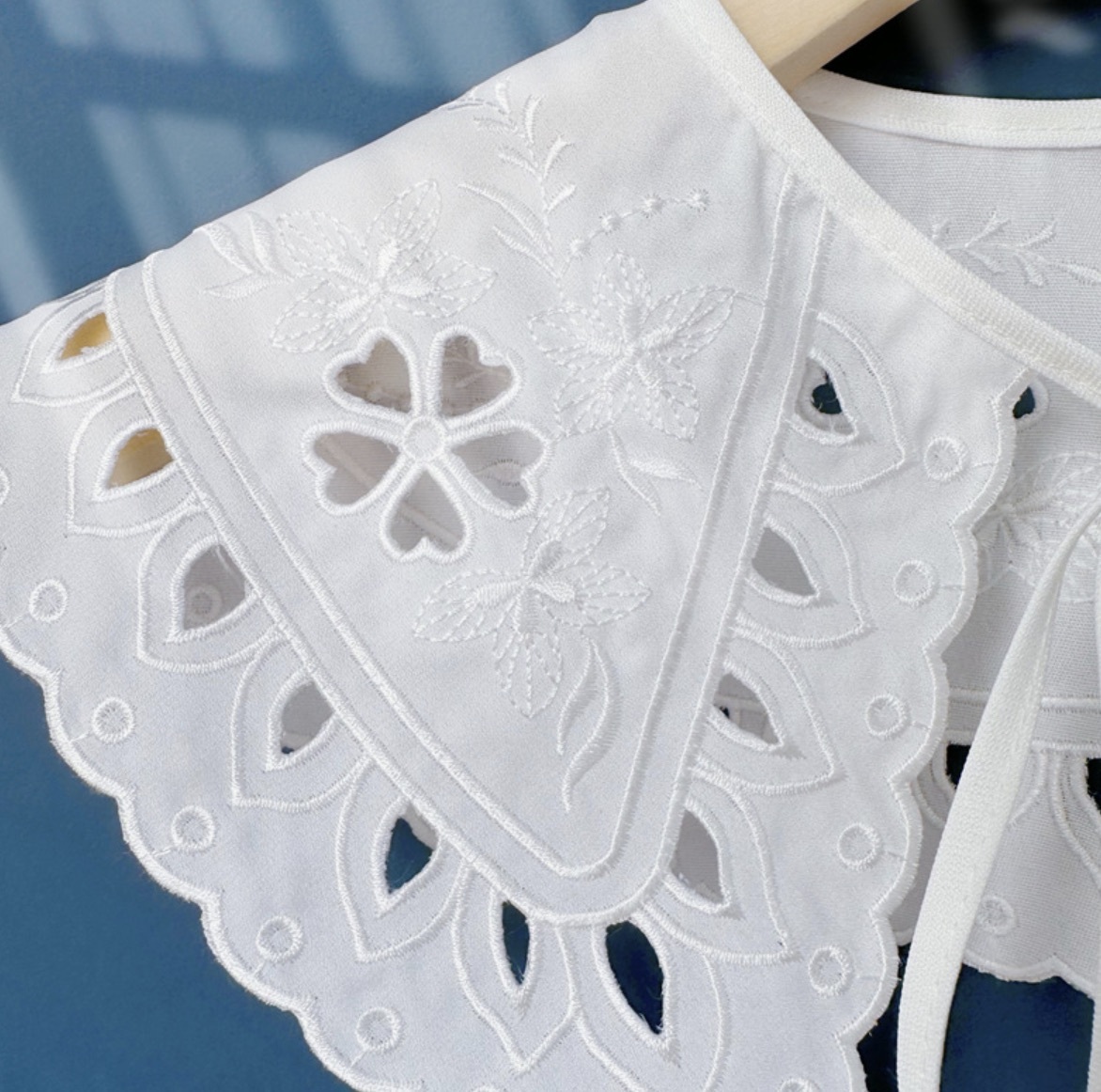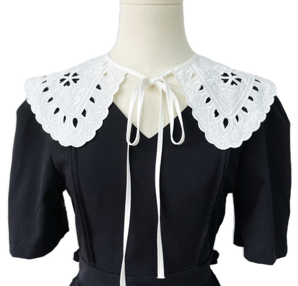 AY108 つけ襟 白 刺繍えり 替え襟 大きな襟 可愛い襟 ホワイト 重ね着 襟 レース レディース フォーマル カジュアル フェミニン 韓国