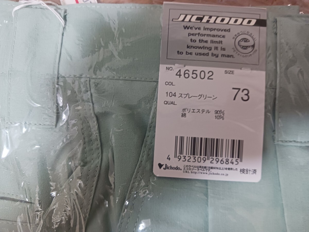 3859 自重堂|エコツータックカーゴパンツ|46502|スプレーグリーン|W73㎝|春夏|新品未使用|作業ズボン|作業服||Jichodo|帯電防止|