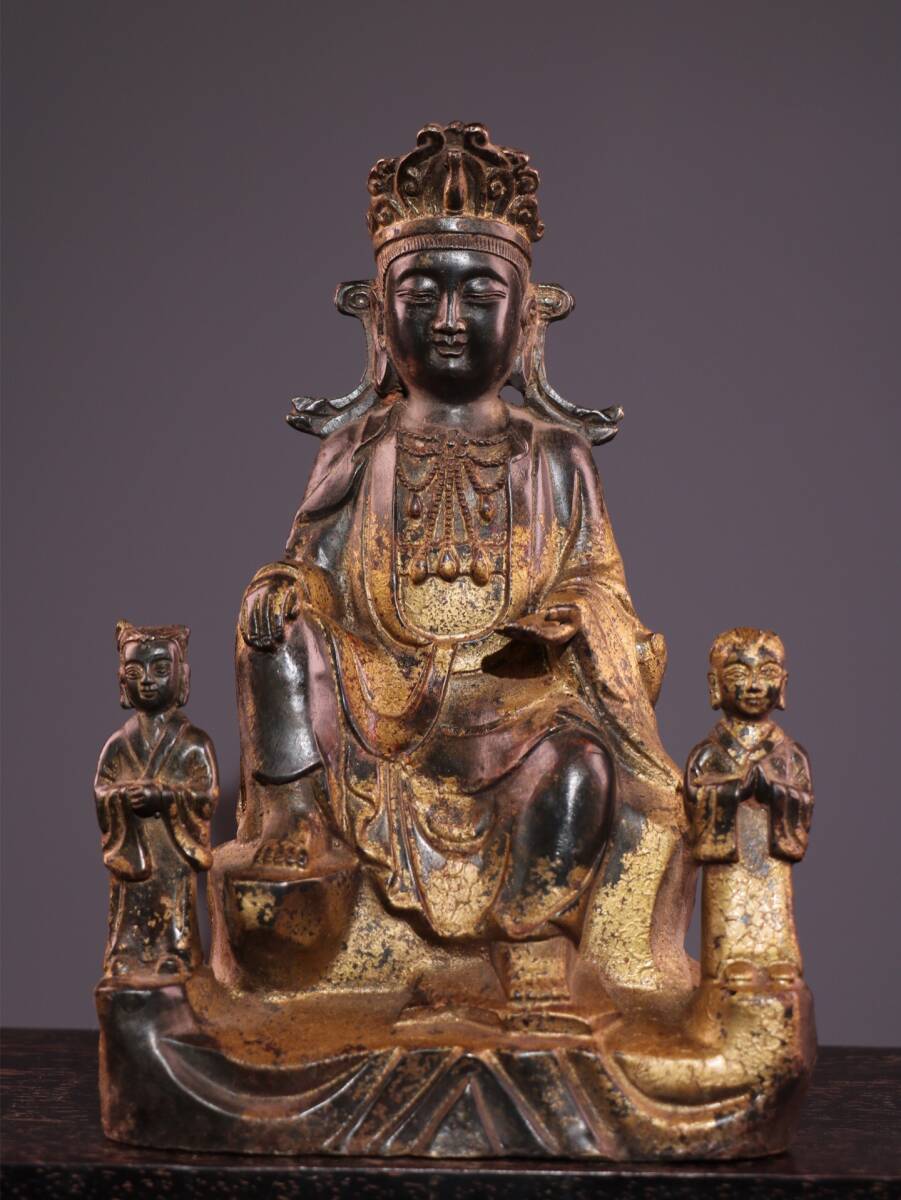 【超珍館蔵】銅製 泥金 送子觀音像 仏教古美術 供養品 古賞物 古美術品 稀少珍蔵品