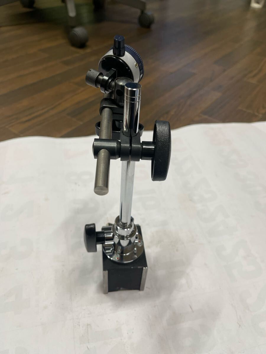 用途工作機械機上あるいは鉄定盤上にて、機械加工ワーク等の寸法を、比較測定を主な手段として、ダイヤルゲージ方式の測定機器で測定(誤差、変差の検出)する場合の、測定器保持具として広く利用されています。