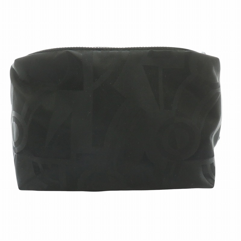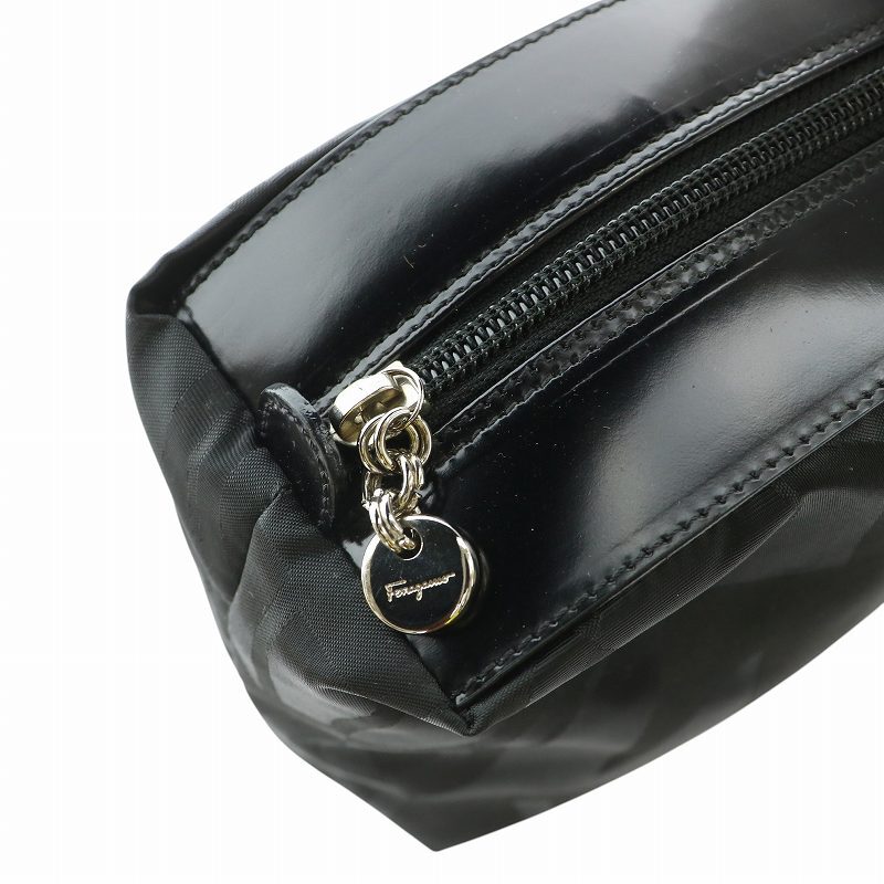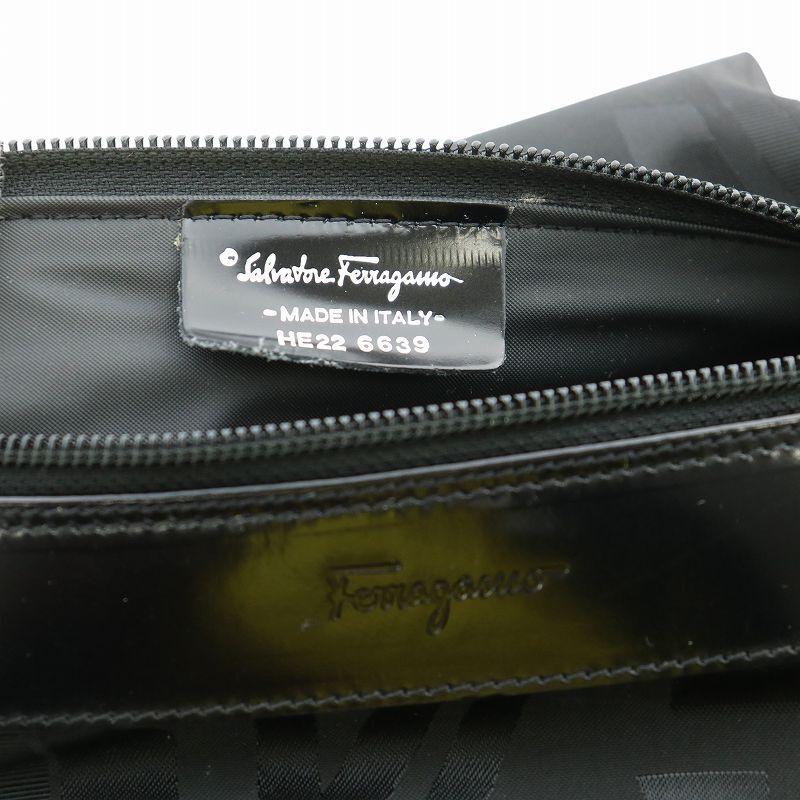 サルヴァトーレフェラガモ Salvatore Ferragamo ミニクラッチバッグ ポーチ ナイロン レザー ロゴ 総柄 黒 ブラック HE22 6639