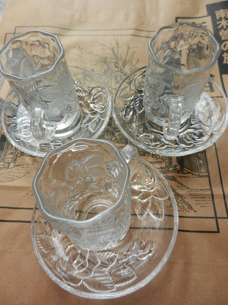 ★☆即決 薔薇柄 グラス 3個セット バラ 厚手ガラス 日本酒 クラッシク 取手付☆★ | ○ 月 × 日 日 直 | |