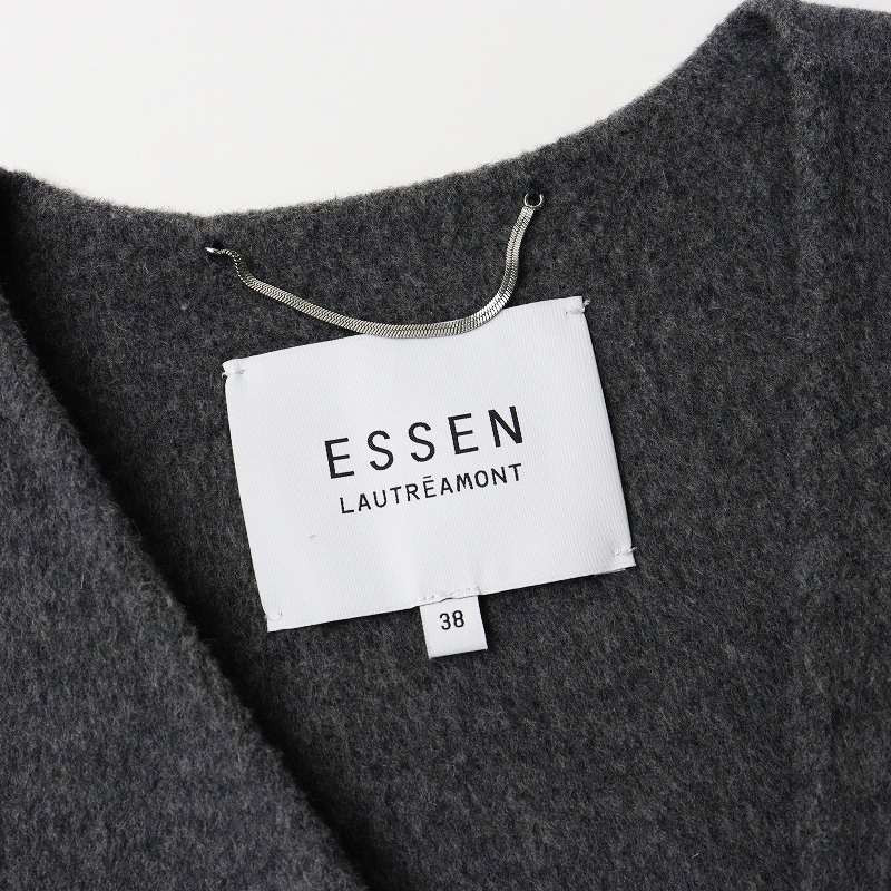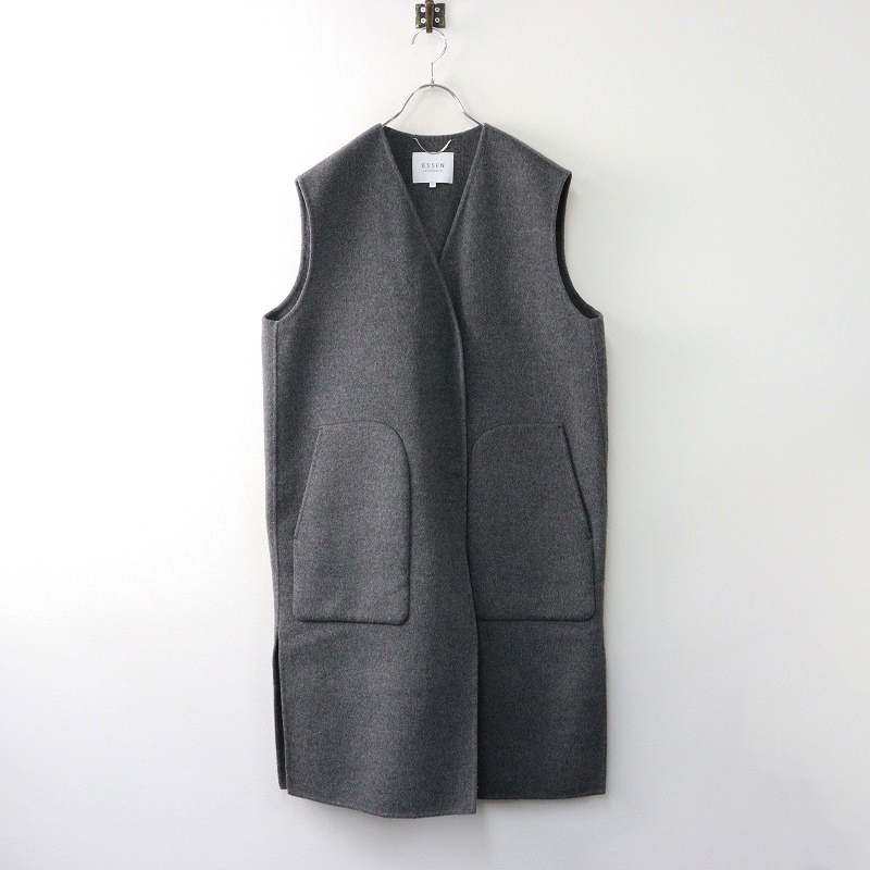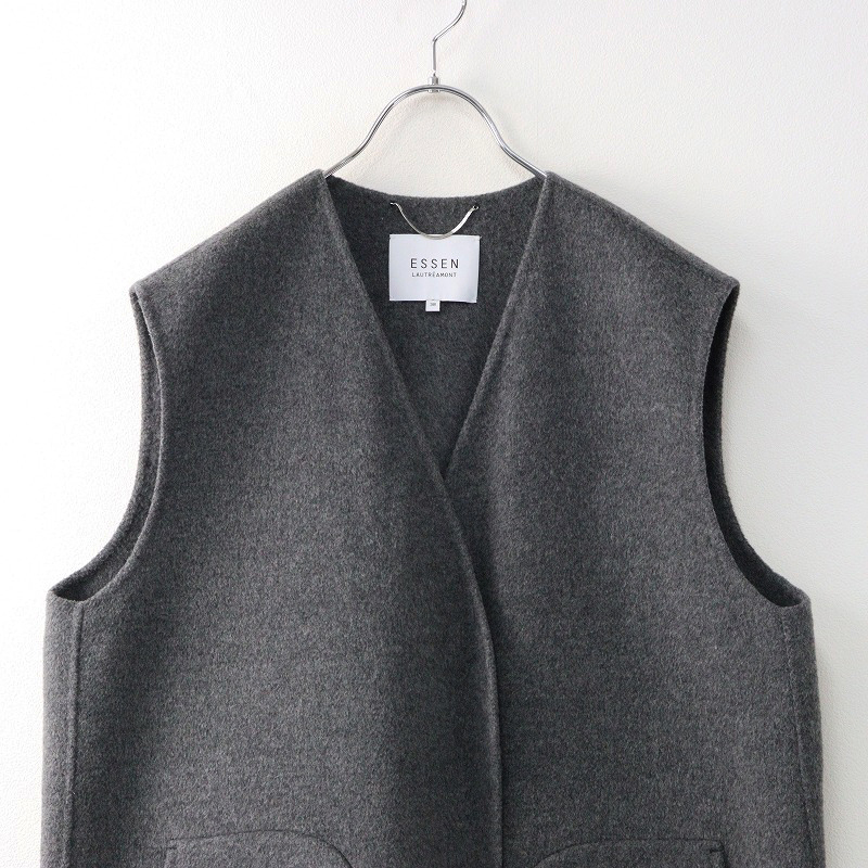 エッセンロートレアモン ESSEN LAUTREAMONT メルトンウール ロングジレ ベスト 38/グレー 羽織り レイヤード【2400014398144】