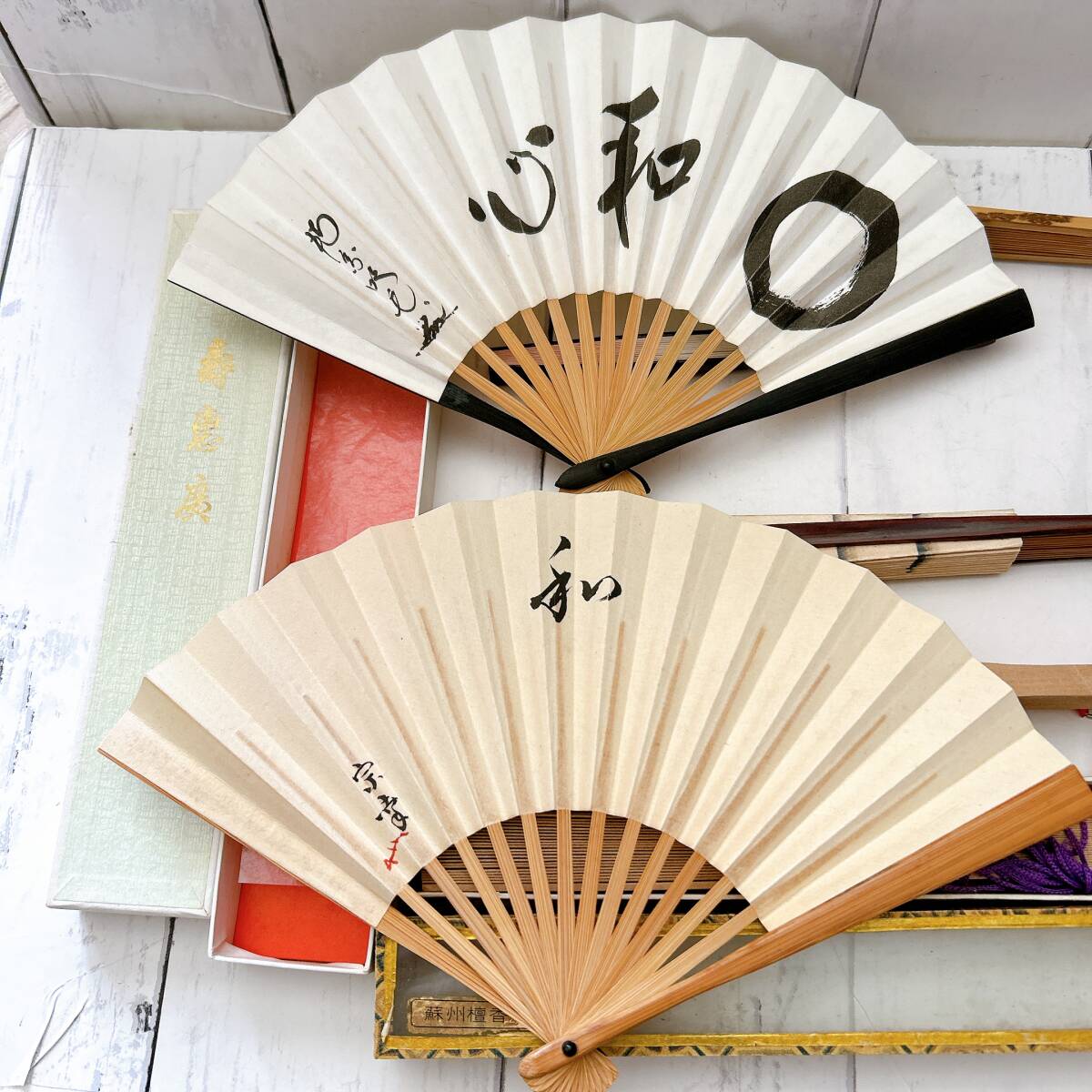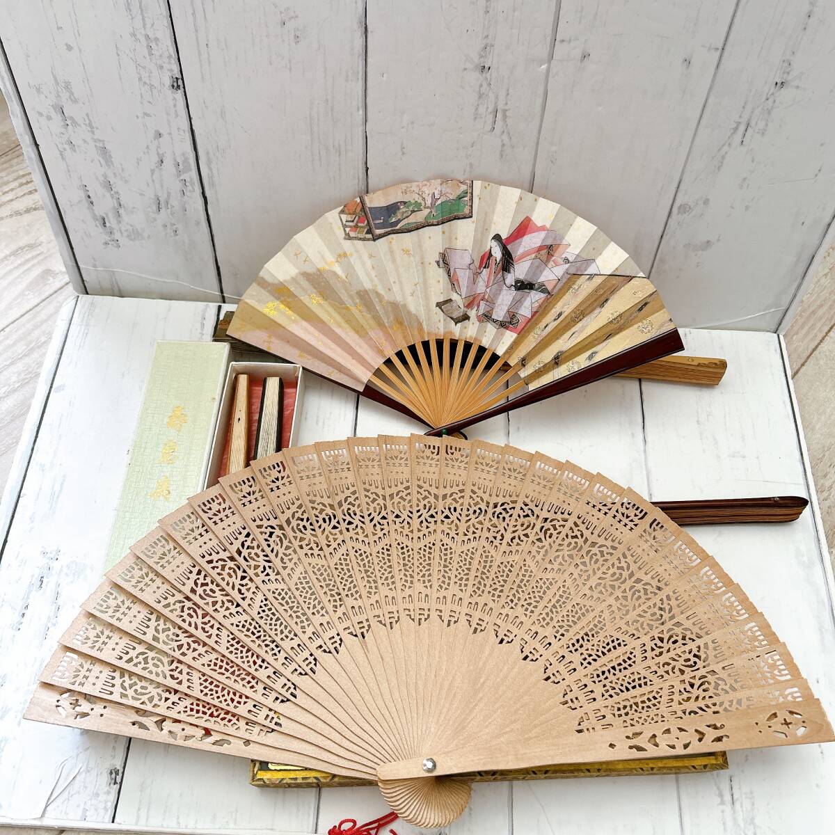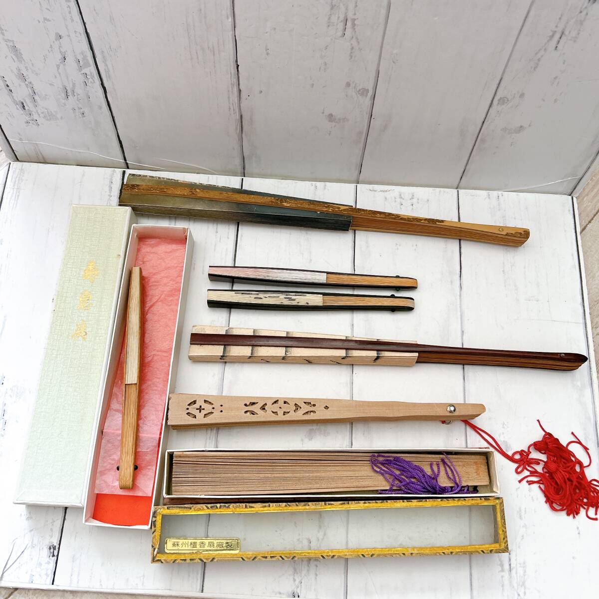 扇子 7点 まとめセット:蘇州檀香扇 透かし彫 書 当時物 御歌 皇后宮