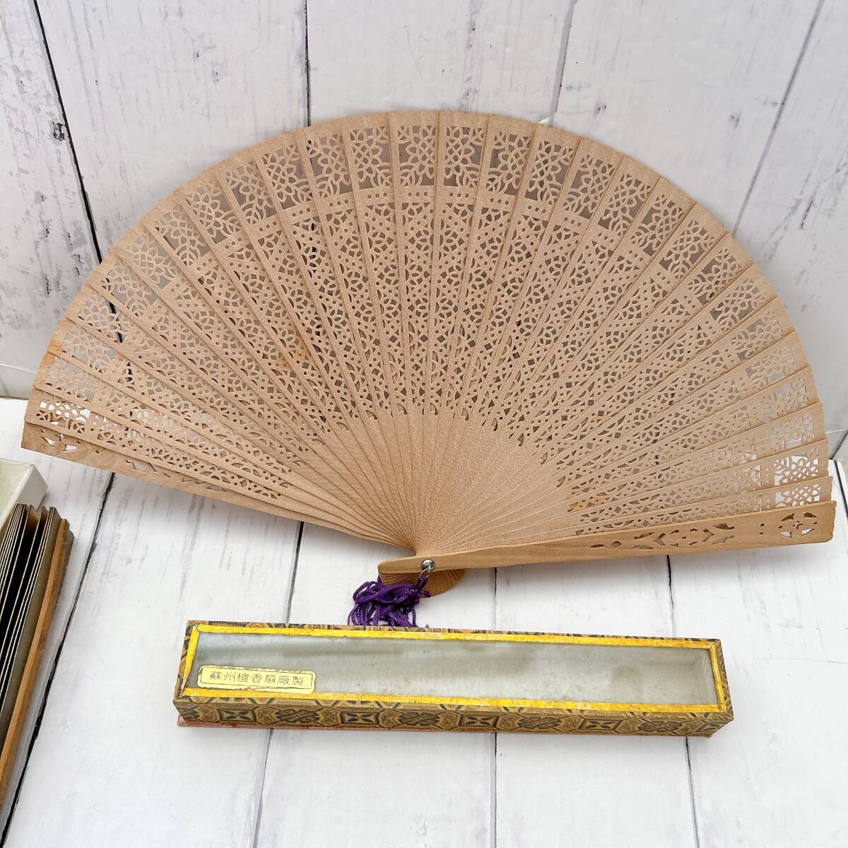 扇子 7点 まとめセット:蘇州檀香扇 透かし彫 書 当時物 御歌 皇后宮 になります。