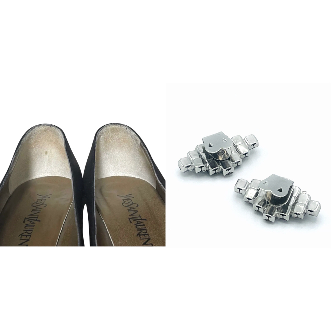 つま先に少しスレ(写真7枚目右上)、左靴内側に小傷(写真9枚目右下)、ヒールにややすり減りがあります(写真10枚目左上)