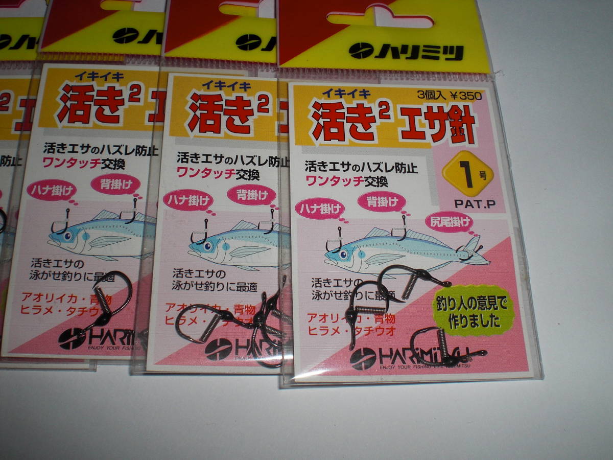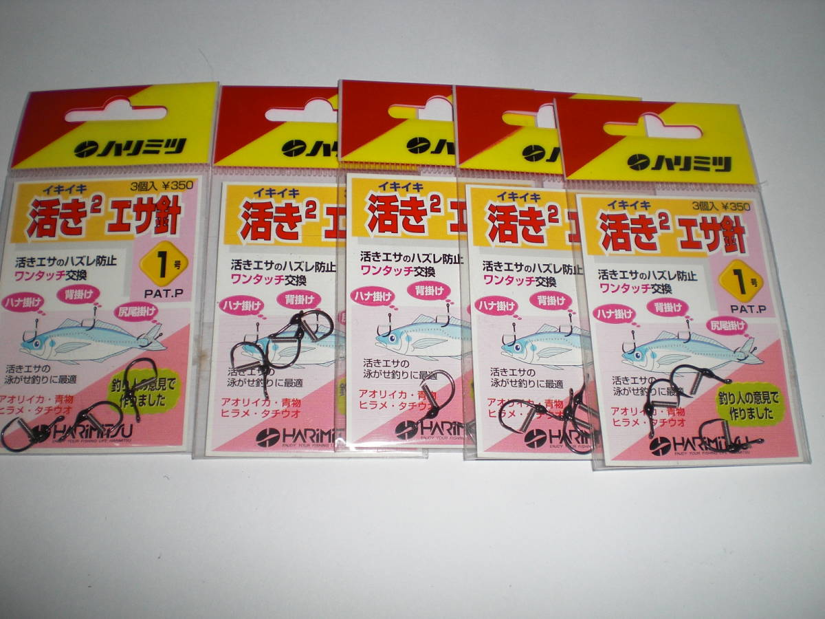 ハリミツ 活きエサ針1号3ヶ入5枚 アオリイカ・青物・ヒラメ・タチウオ等の泳がせ釣りに最適 (希望小売価格¥350-)
