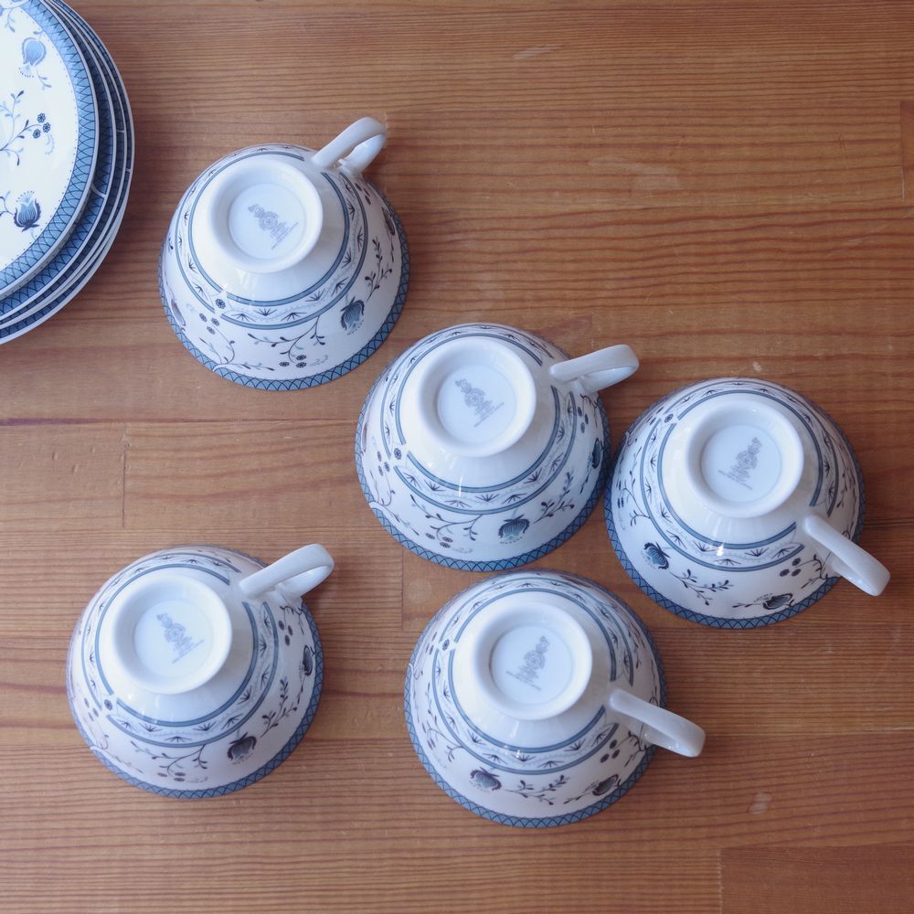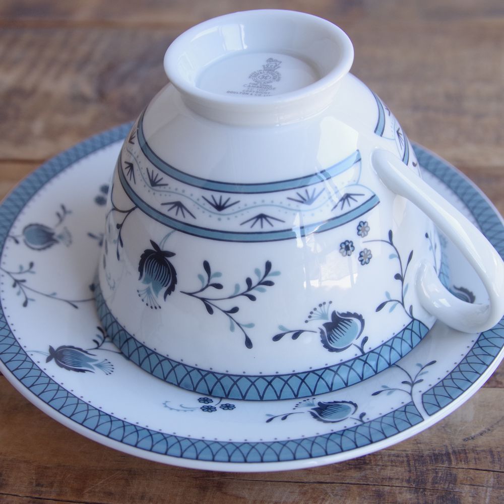 イギリス製ヴィンテージ食器 Royal Doulton ロイヤルドルトン ケンブリッジ ティーカップ&ソーサー #241108-1~5 Cambridge レトロ 花柄 青