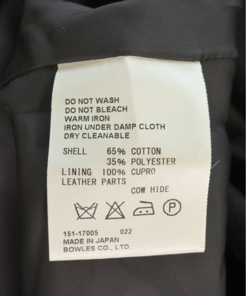 メイン素材:綿65%、ポリエステル35%、(裏地)キュプラ100%、(革部分)牛革、(ライナー)毛90%、ナイロン10%