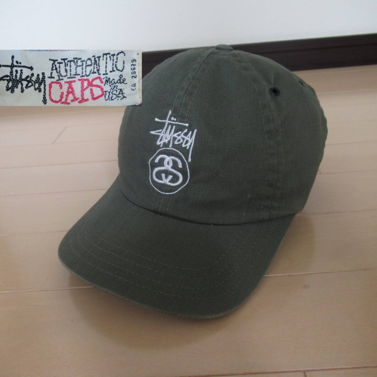 ★即決送込★USA製 90s OLD STUSSY CAP カーキ キャップ 帽子 オールド hat スナップバック old oldstussy ステューシー 6パネル 白タグ