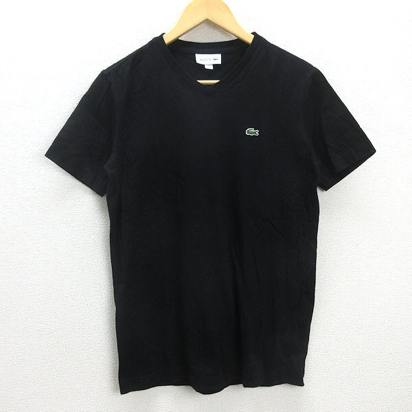 G■ラコステ/LACOSTE VネックコットンTシャツ【US/S】黒/men's/27【中古】■