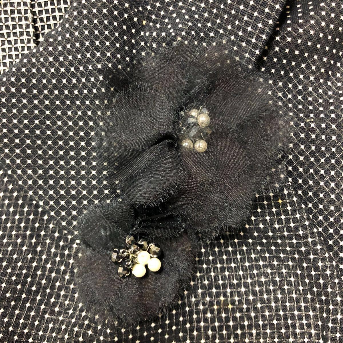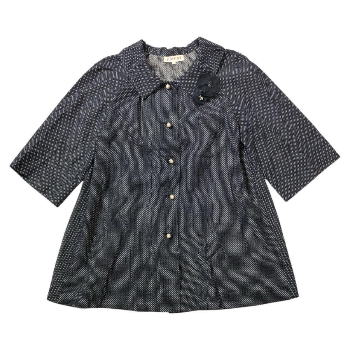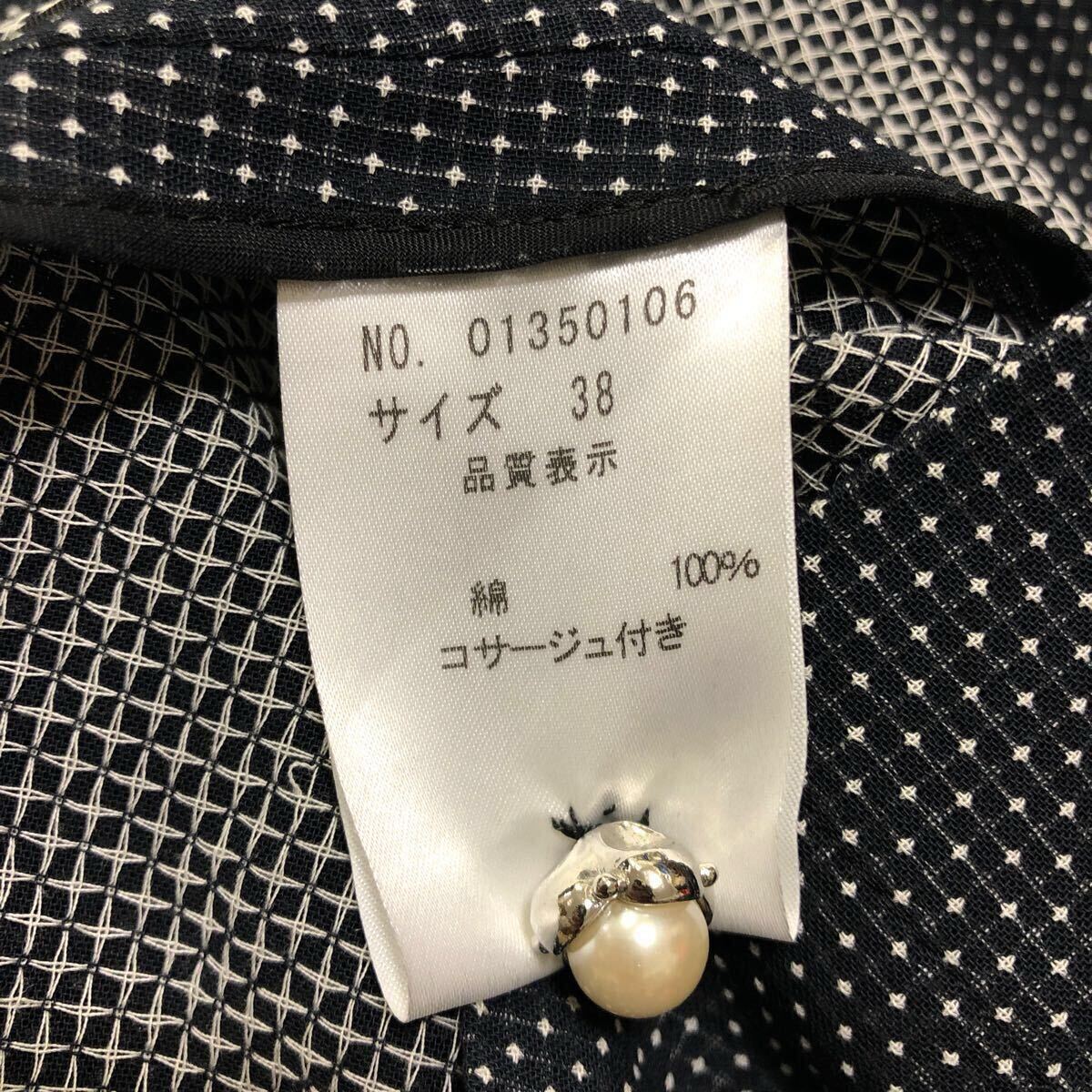 取り外し可能 フラワー コサージュ付 ドット柄 5分丈袖 コットン ブラウスになり大変格好良くお洒落です