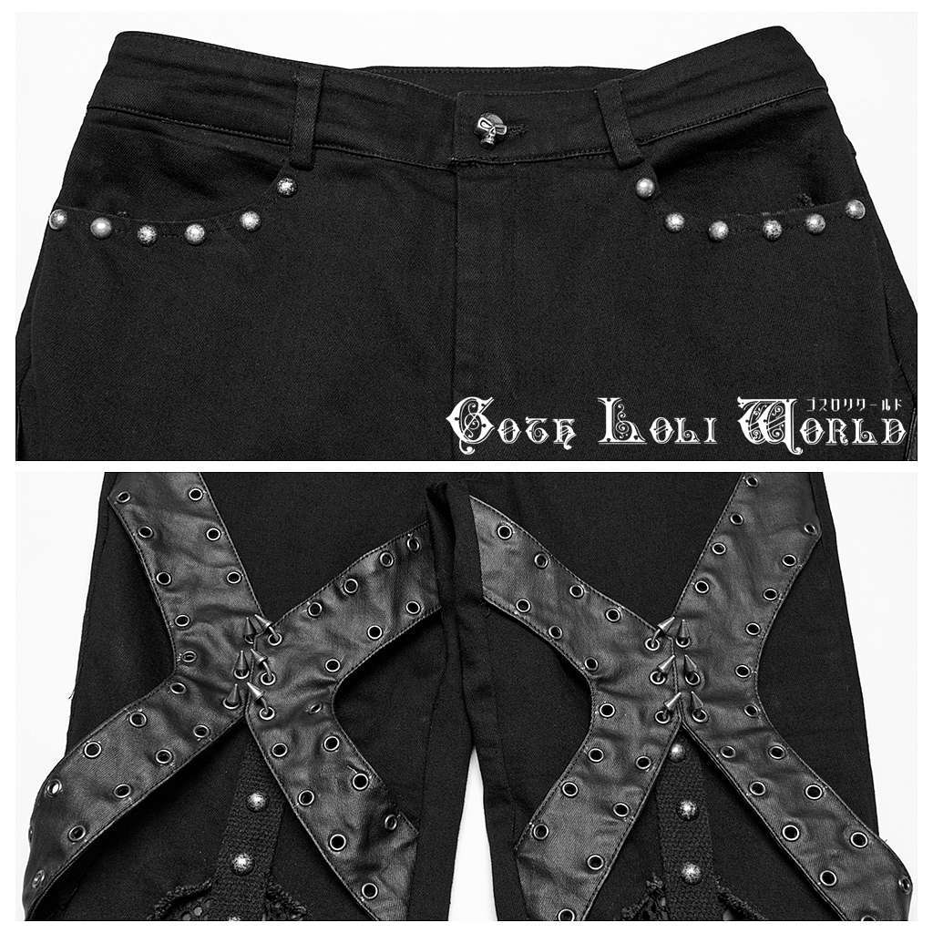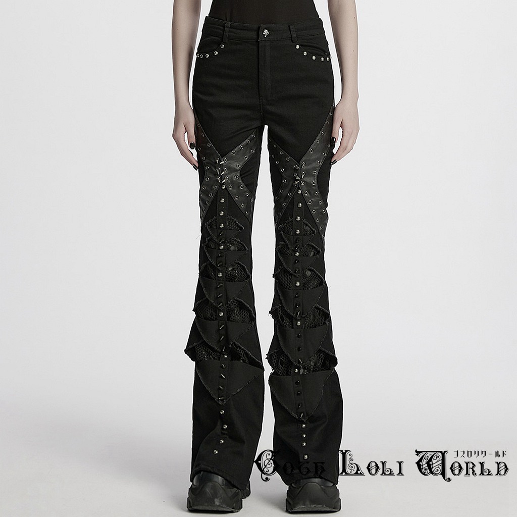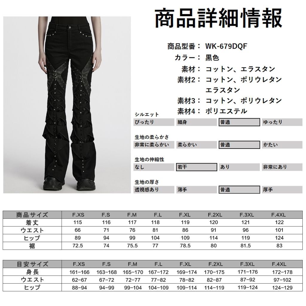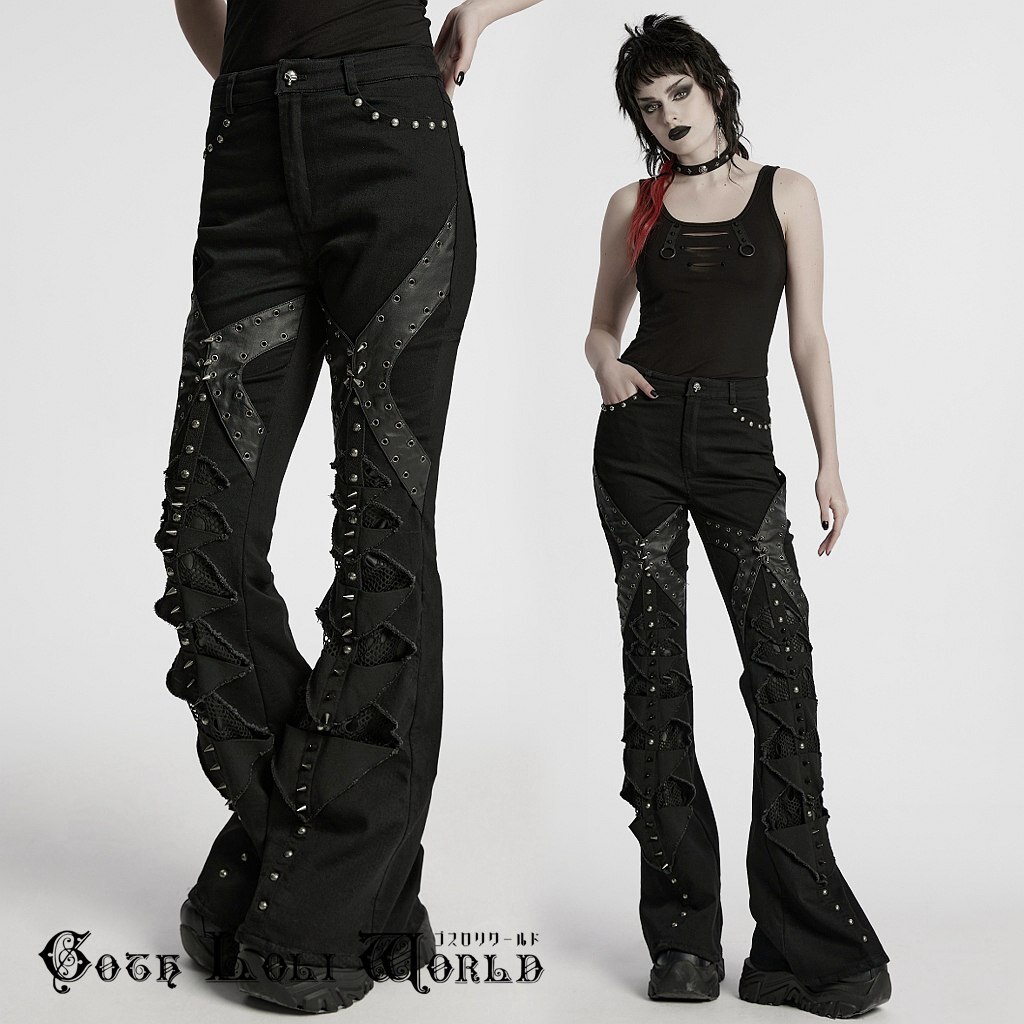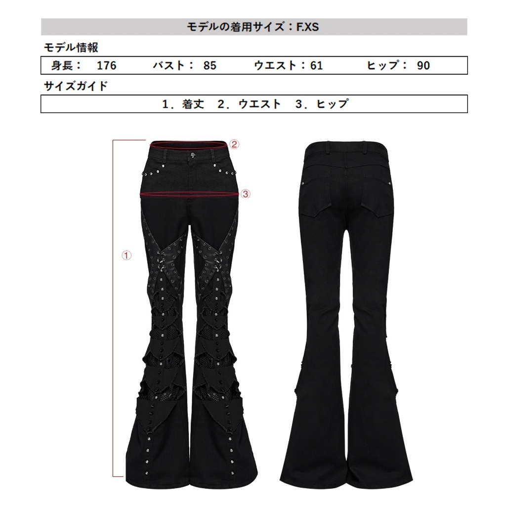 WK-679DQF-BK-M パンクファッション フレア ロングパンツ ゴシック パンク ロック ビジュアル系 ヴィジュアル系 V系
