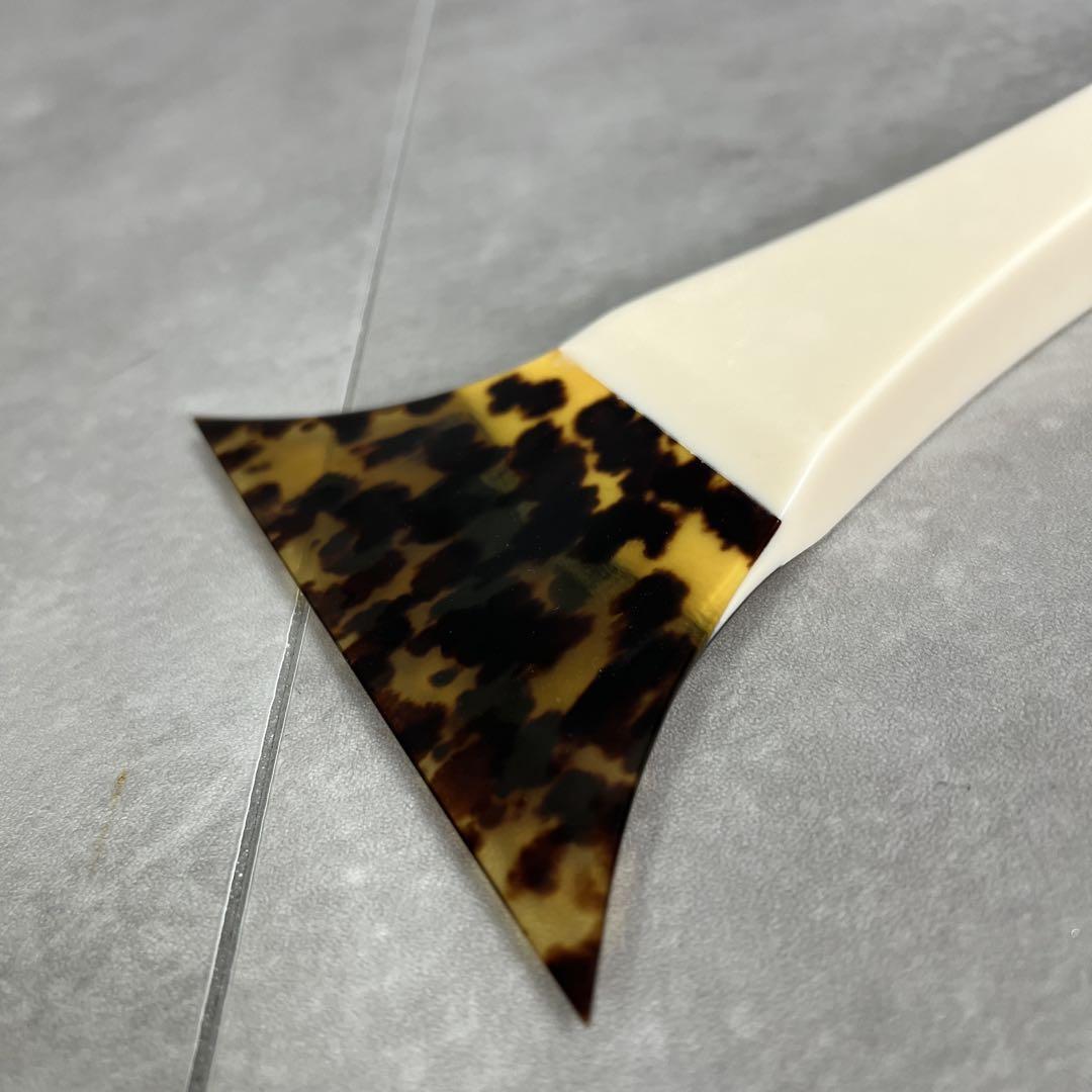 撥の上部にはぶんだんにべっ甲が使用されており、手元とべっ甲のバランスがとても美しく感じます。