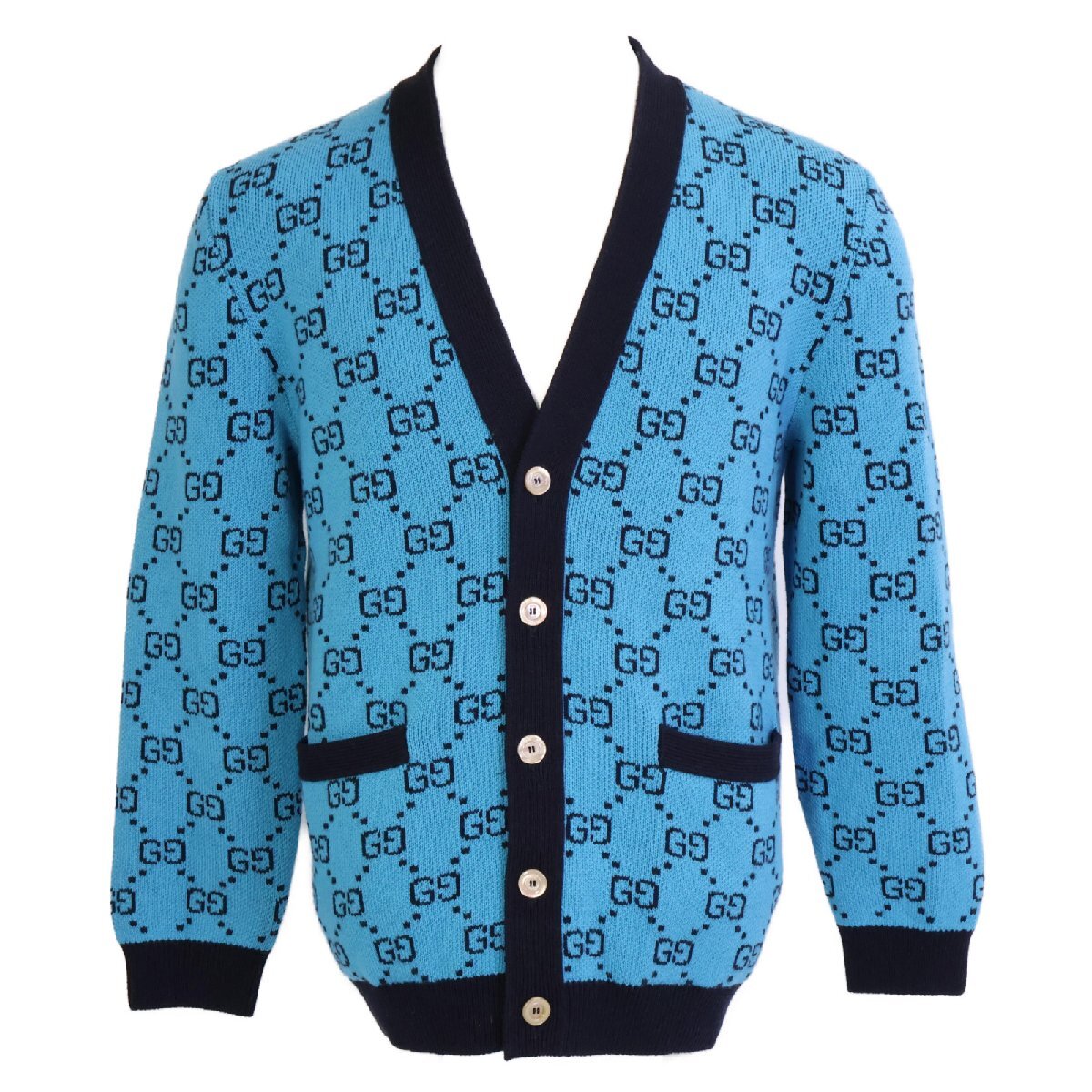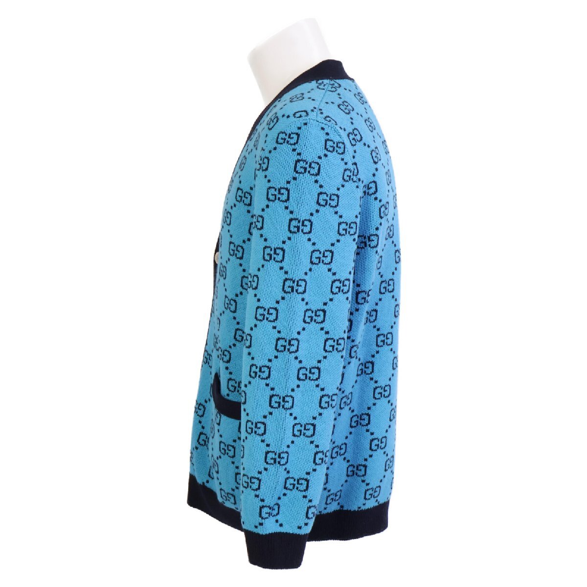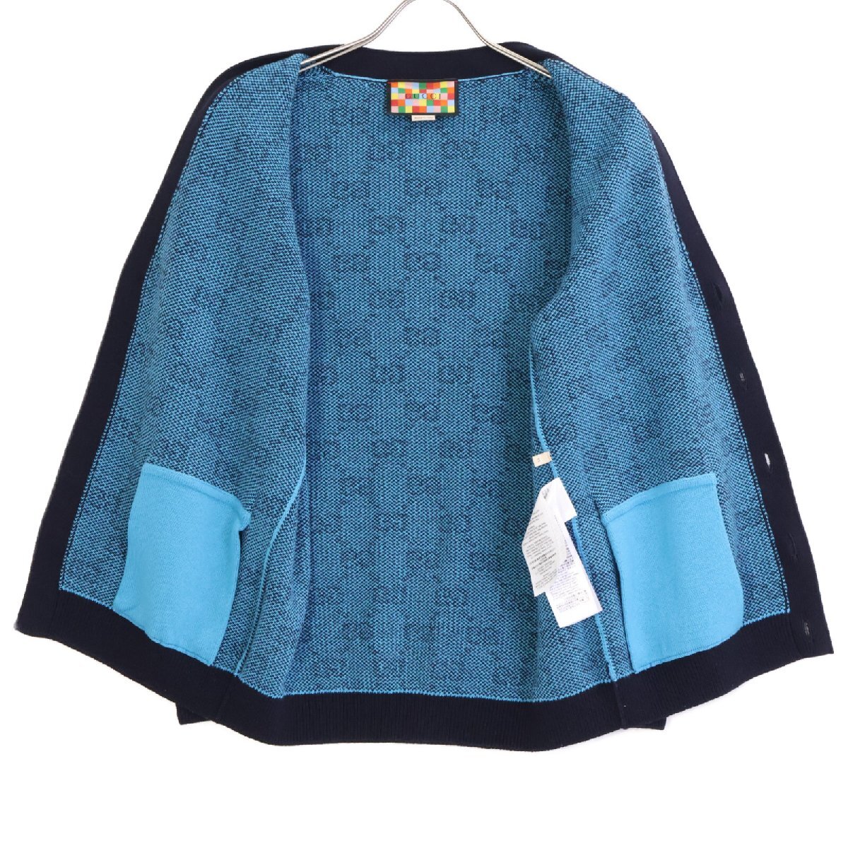 美品/国内正規 GUCCI グッチ 661156 XKBXI GG総柄 ウールxコットン ニット カーディガン XS ブルー メンズ