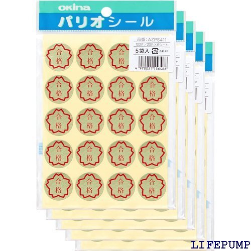 オキナ 4号シール 合格 PS411 1パック 20片×6枚入 ×5セット AZPS411 8848