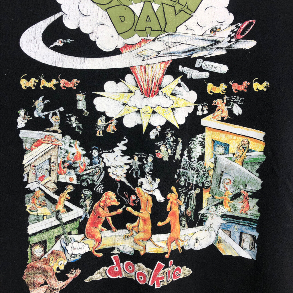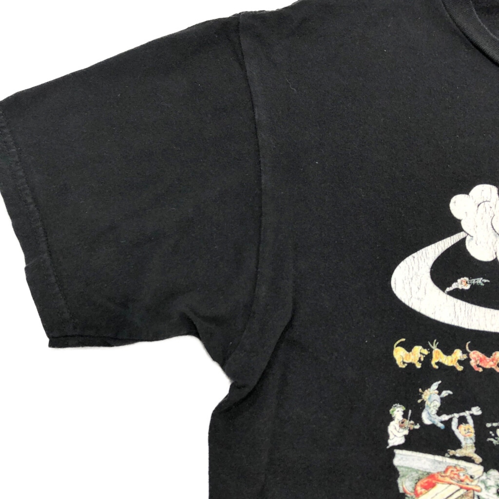 | [商品管理番号] U0610 [サイズ] M [実寸サイズ] 肩幅:約46cm 着丈:約62cm 身幅:約52cm 袖丈:約18cm [主な素材] 表地 : コットン [色] ブラック [仕様] バンド [状態] 特記事項:色褪せ、プリント劣化 | |||
