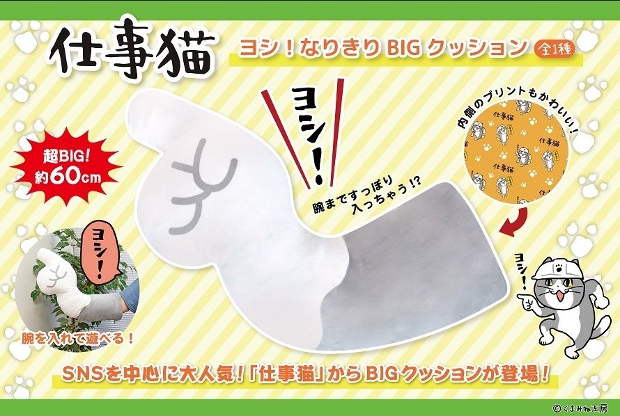仕事猫 ヨシ! なりきりBIGクッション 指差し 腕入れ 60cm ぬいぐるみ 60サイズ
