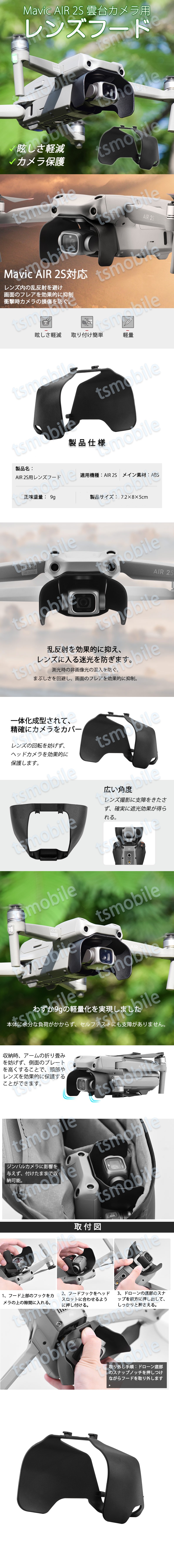 | DJI mavic AIR2Sドローン 適合レンズ内の乱反射を避け、画面のフレアを効果的に抑制し、衝撃時カメラの損傷を防ぐ。カチッと固定できて、飛行中は緩みません。遮光機能を強化しながら外部の衝撃を吸収できる簡単に取り付けられる本体重量: 9g製品サイズ:7.2*8*5cm商品図の中のドローンとバッグは別売りです。本商品の内容はレンズフード1個となります。 |