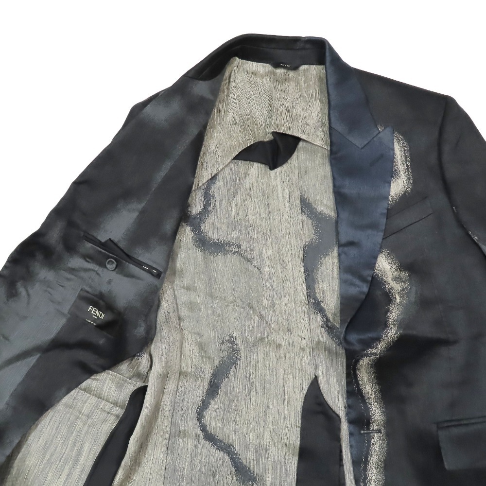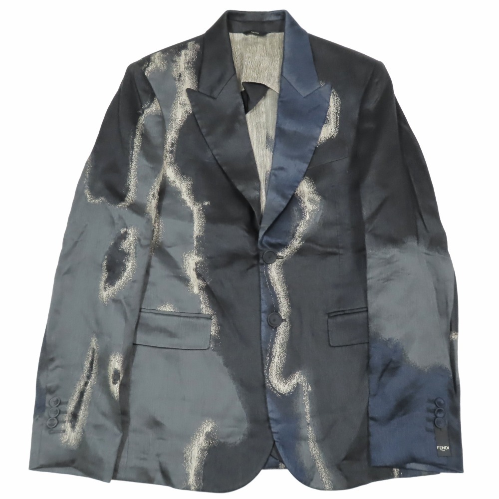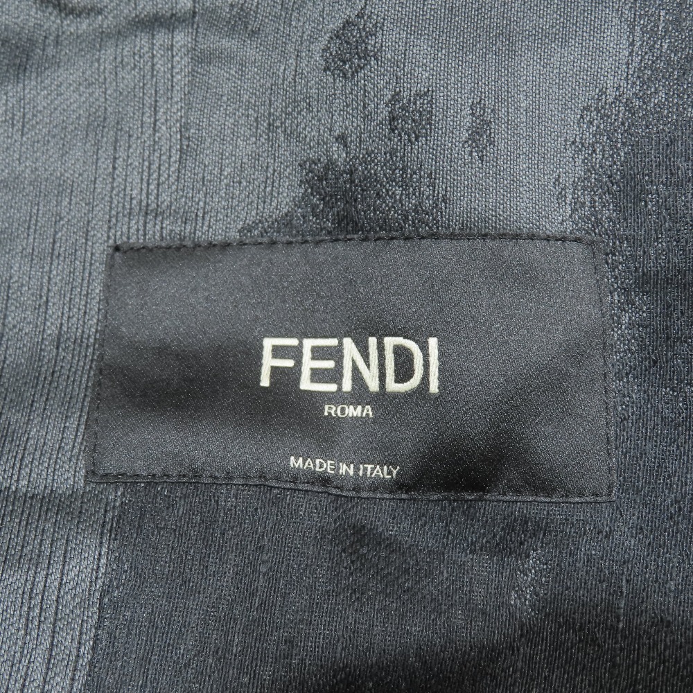 良品 21ss FENDI フェンディ アース ジャガード テーラードジャケット ブレザー 裏地なし 2B 総柄 46 ネイビー ブラック