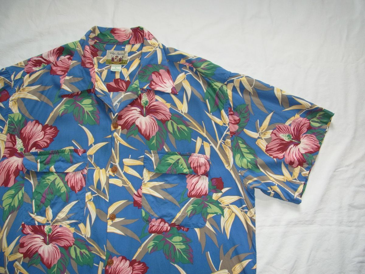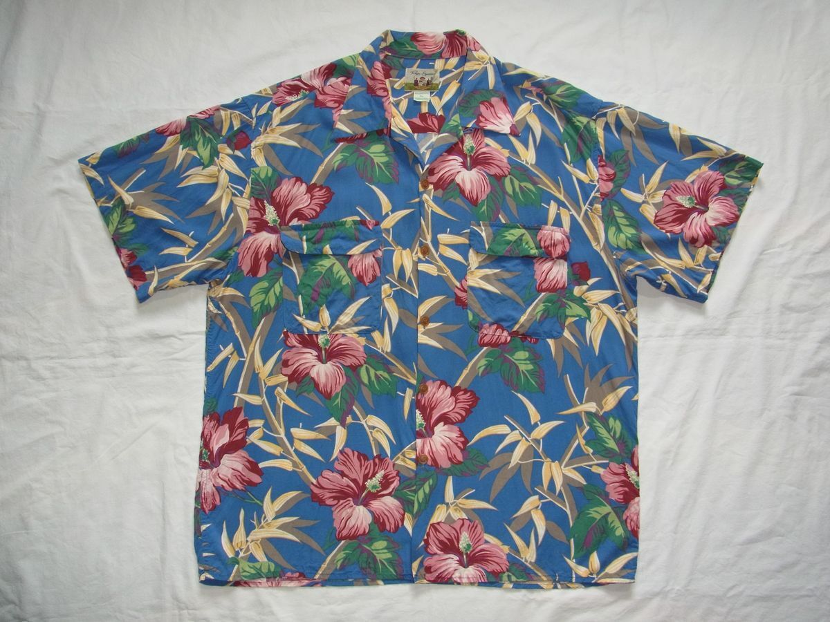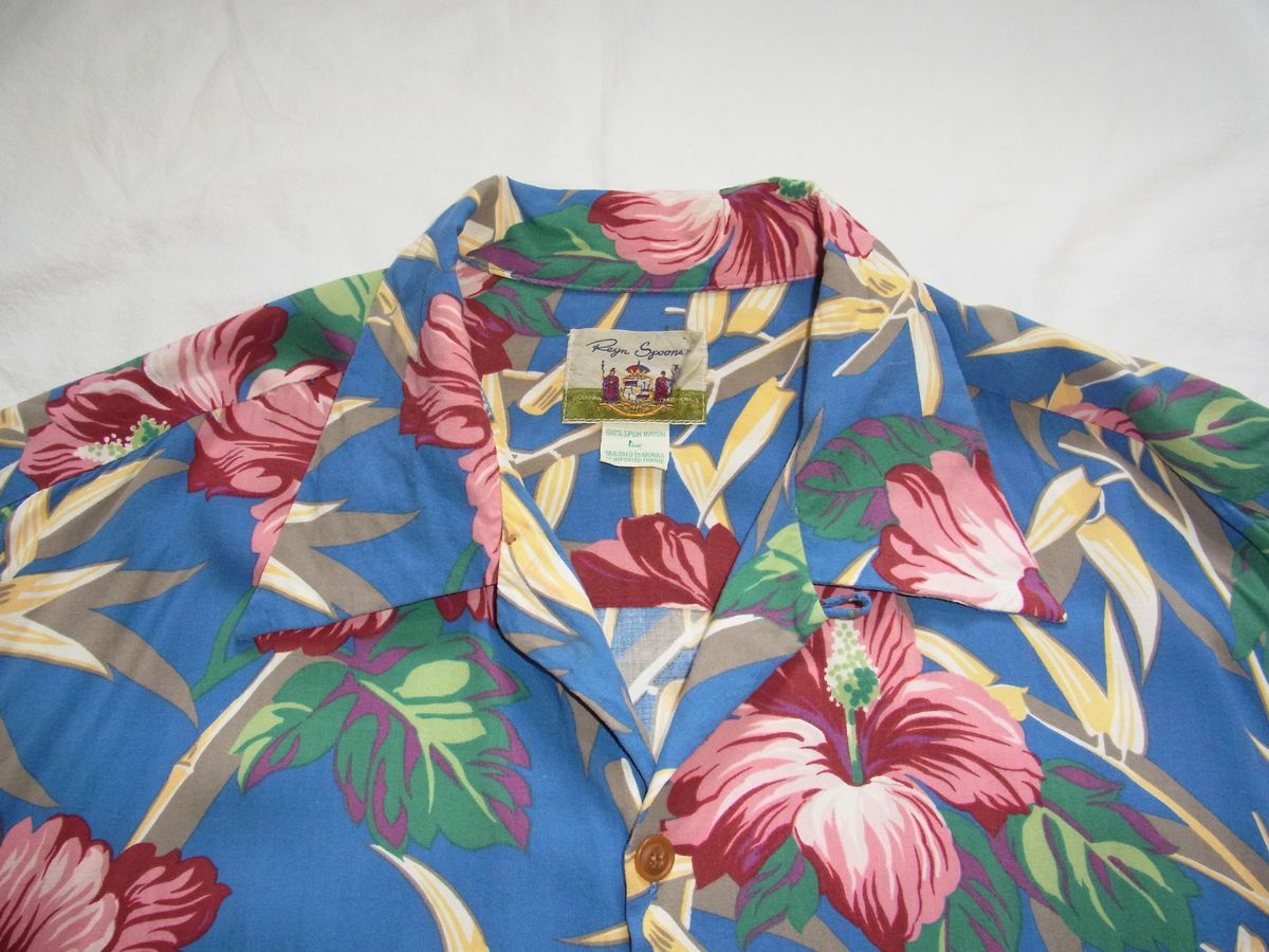 ☆ 80s90s ハワイ製 ビンテージ Reyn Spooner レインスプーナー ハイビスカス柄 レーヨン アロハシャツ sizeL 青 ☆USA古着 ハワイアン OLD