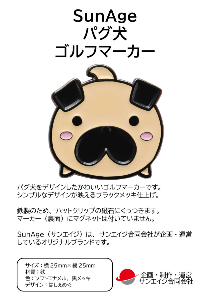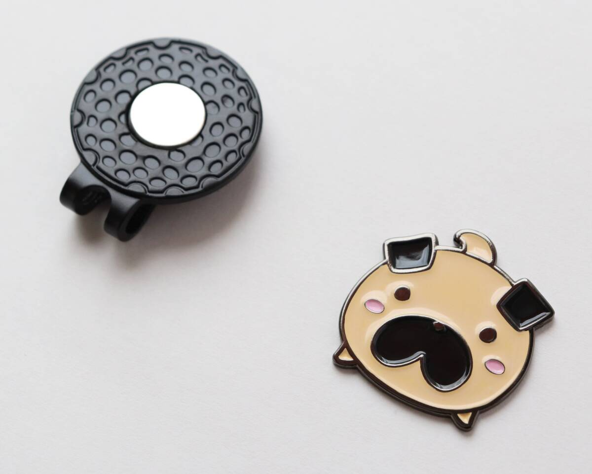 パグ犬をデザインしたかわいいゴルフマーカー(ボールマーカー)です。