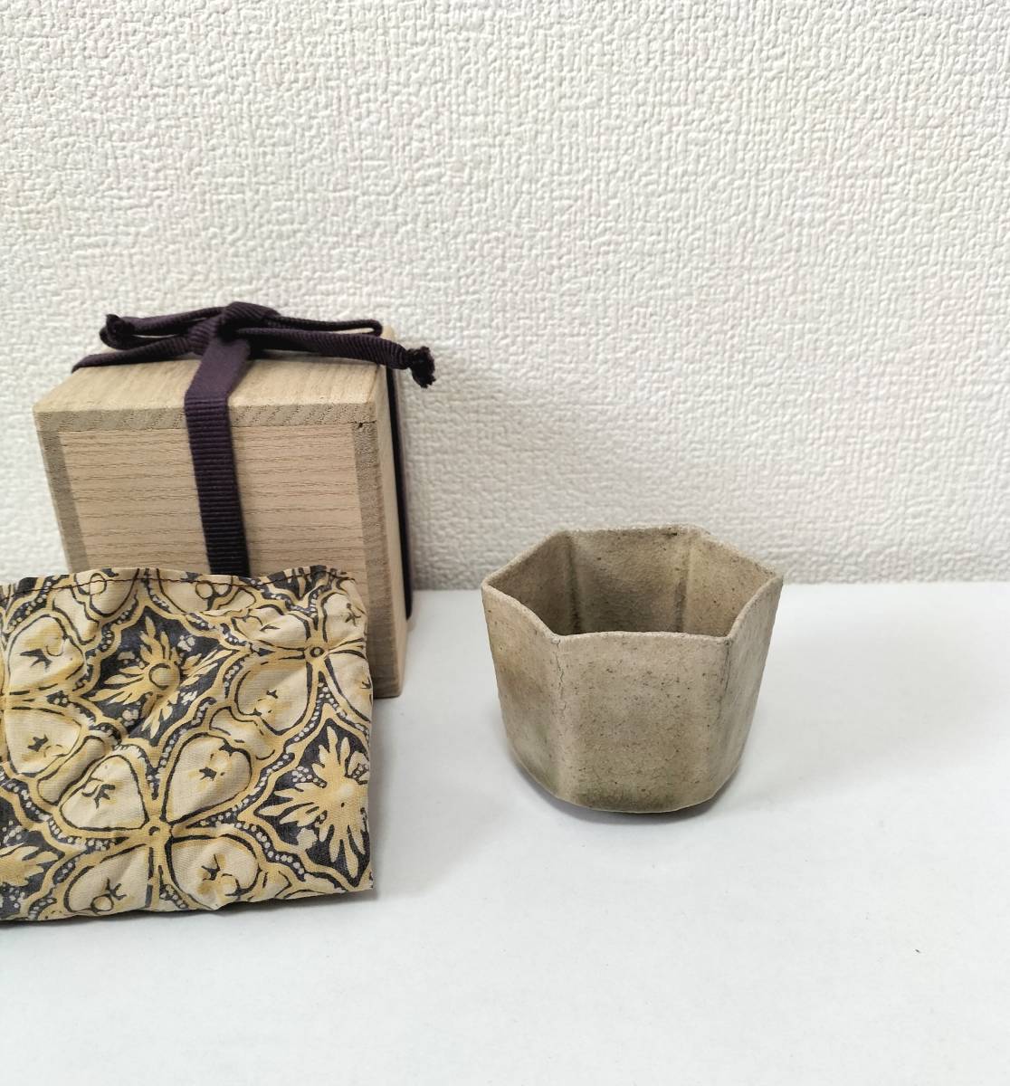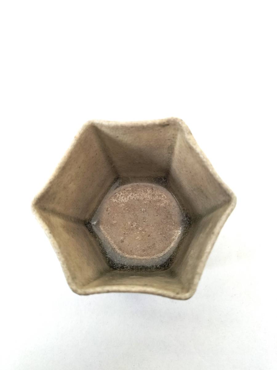 備考:本物保証いたします(万が一贋作と判断された場合、当方納得の上、速やかに落札金額・送料・手数料を含め全額返金いたします)。桃山時代の本歌・黄瀬戸六角盃です。黄瀬戸六角盃は酒器の最高峰に位置するもので、オークションのみならず、骨董店でも確実な本歌はほとんど出ないと思いますし、出ても表に出ずに然るべき人の手に渡ってしまうものと思います。この六角盃は、2012年6月に東京美術倶楽部開催のTokyo Antique Fairにおいて東京青山の名店が出品販売した来歴のあるものです。もとは五つの数物がそれぞれに分かれたものとのことでした。現代では真似できない、型を使っても固くなり過ぎない細やかな造形と、見込みの黄瀬戸釉の釉溜まりは本歌そのものです。また高台には輪トチ(桃山本歌の褐色)がそのまま残って、それが経年の手擦れにより丸くなっています。本来なら輪トチが残るのは焼成不十分の場合が多いのですが、これはよく焼けています。使えば使うほど自然と育っていくと思います。写真10は同手が『桃山の茶陶:洛中の発掘品と伝世の名品』(根津美術館・大阪市立東洋陶磁美術館 1989年)に「元屋敷窯」として掲載されています。