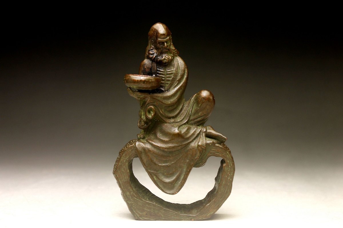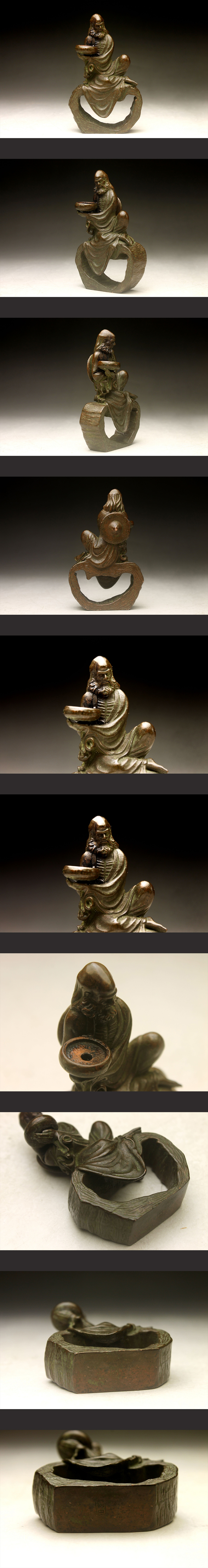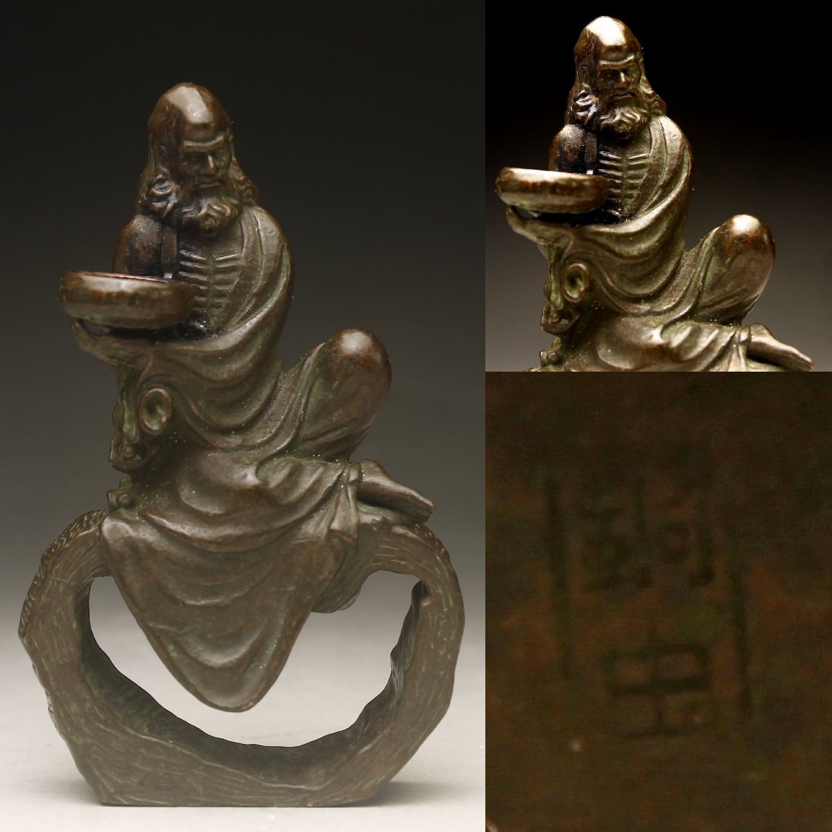 【余韻】 香道具 銅虫 銅製打出 達磨 だるま 線香立 時代物 極上品 初だし品 無傷美品<同梱可>