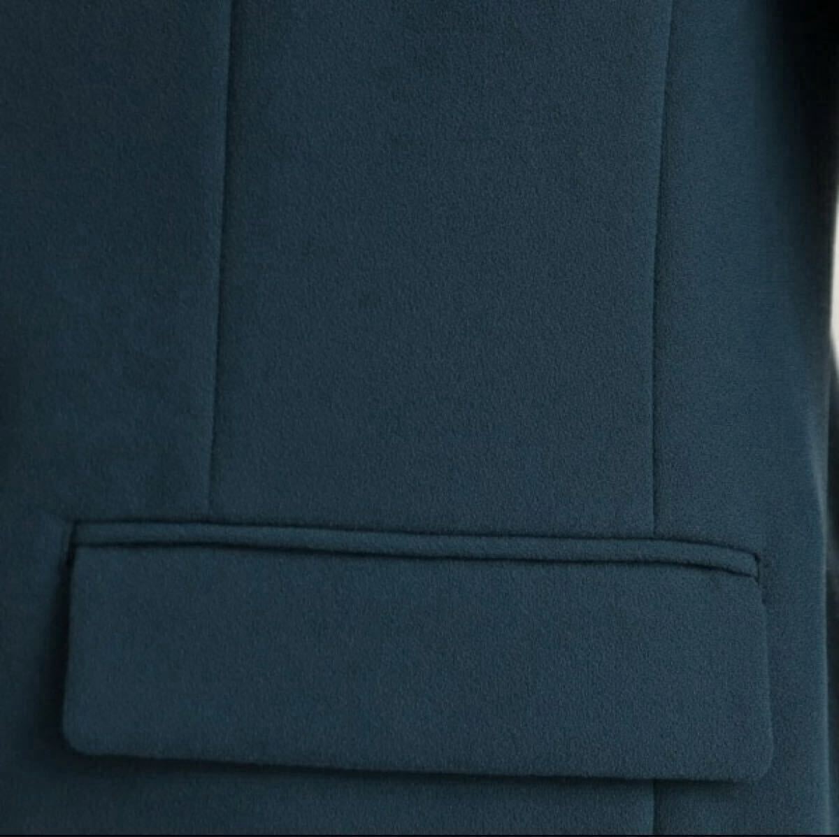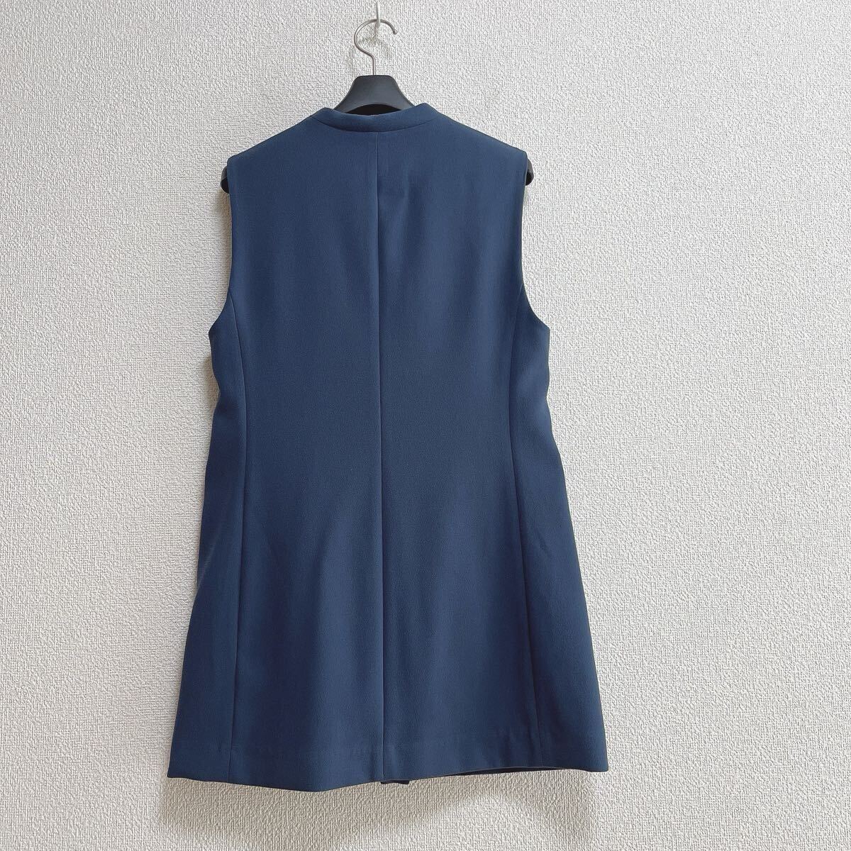 ノーカラーで衿まわりがすっきりしたラインなのでシャープに見えるデザインです。