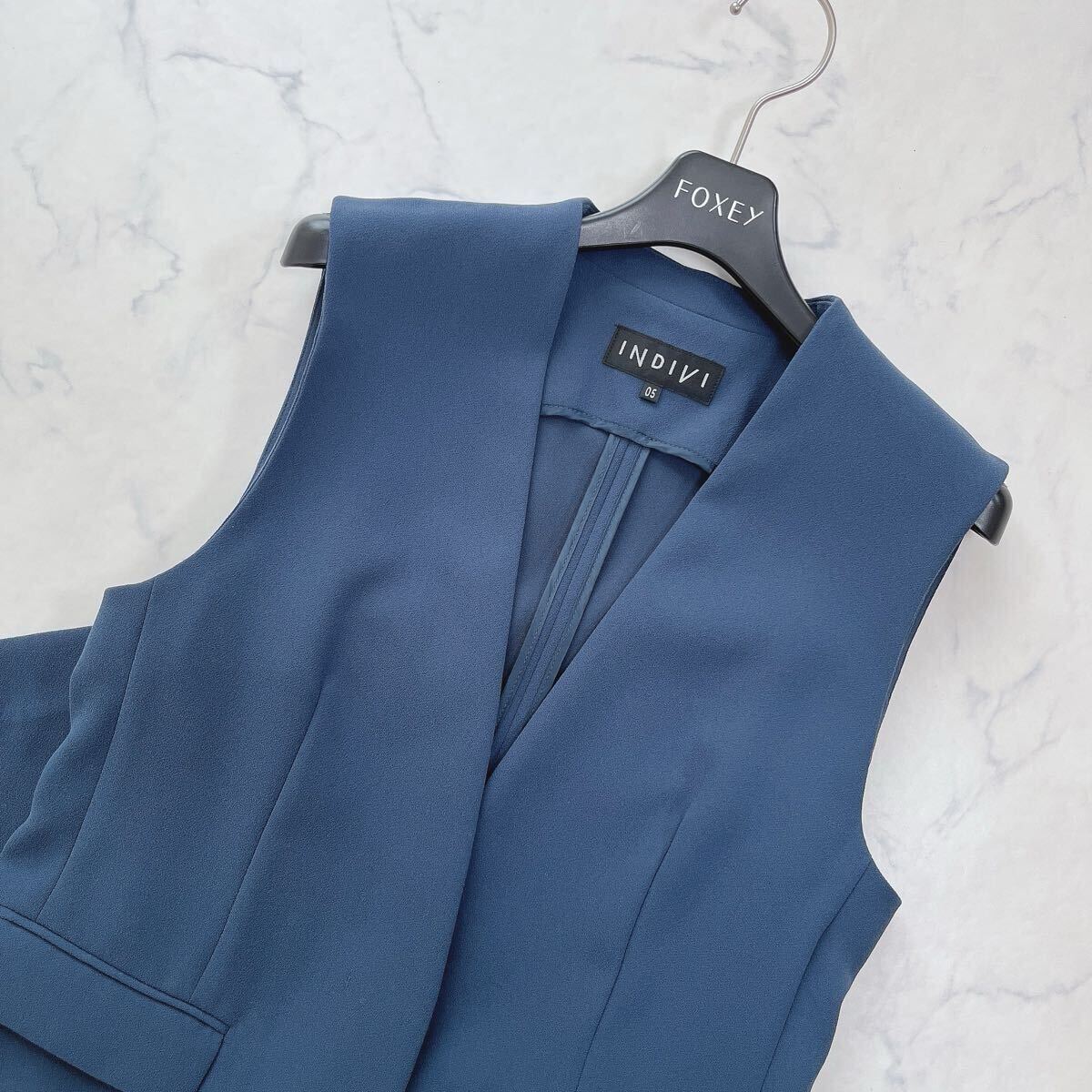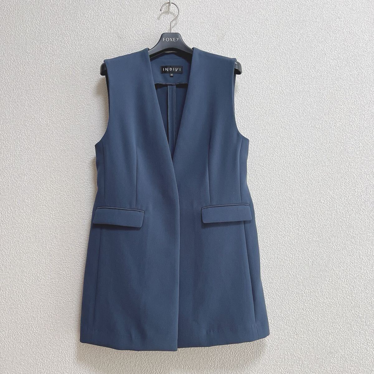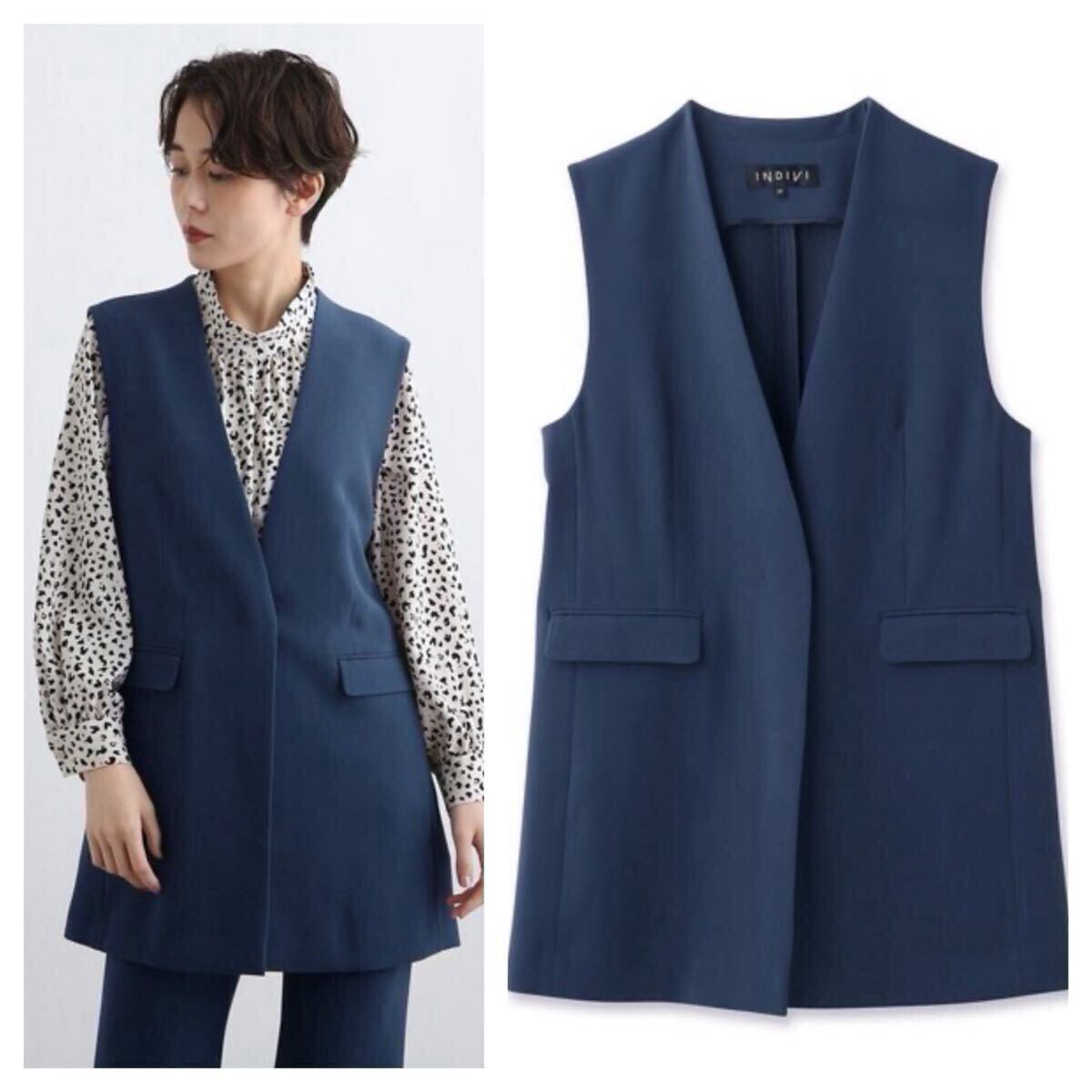 INDIVI インディヴィ◆ Oggi掲載 ストレッチ ジレジャケット 05 ブルーグレー◆小さいサイズ アンタイトル リフレクト クードシャンス