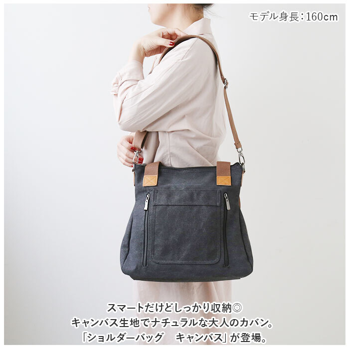 商品説明 | ・・スマートだけどしっかり収納◎キャンバス生地でナチュラルな大人のカバン。「ショルダーバッグ キャンバス」が登場。 ・【キャンバス生地】 ・丈夫でナチュラル感が魅力的なキャンバス生地を使用。しっかりとした生地感なので、毎日ガシガシ使えて安心。 ・【大人シンプル】 ・通勤や通学にも使える、飽きの来ない大人シンプルなデザイン。ナチュラルテイストなので、お洋服に合わせやすく、カジュアルさと大人らしさを両立。 ・【2WAY仕様】 ・付属の長さ調節ができるショルダーベルトをつければショルダーバッグにも◎ほど良い長さの持ち手は、肩掛けにも手持ちにもできる2WAY仕様。 ・【収納力◎】 ・スマートな見た目だけど、マチがあるので収納力はバツグン!B5サイズが収納できて、ペットボトルや折りたたみ傘、ポーチや長財布など。お出かけに必要なものはしっかり収納できる。 ・【ポケット多数】 ・メイン収納や外側には、小物を仕分けて収納できるポケットが多数。ゴチャつきがちなバッグの中も整理整頓できる。 ・【ファスナー仕様】 ・メイン収納はファスナー仕様になっているので、バッグの中が見えない&飛び出さない。 ・【いろいろなシーンで】 ・お仕事や通学、お出かけなどはもちろん、荷物がたくさん入る&ショルダーバッグで両手があくので、マザーズバッグとしてもオススメ! ・【選べるカラー】 ・カラーバリエーションが豊富。帆布の優しくナチュラルな色合いなので、気になる色にチャレンジするのもGOOD♪ ・【ポケット仕様】 ・メイン収納:オープンポケット×2、ファスナーポケット×1 ・フロント部分:ファスナーポケット×2、オープンポケット×1 ・後部分:ファスナーポケット×1 |