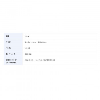 | エレガントなボディカラーのスリムタイプ万年筆です。デザイン性・携帯性に優れた1本です。 |