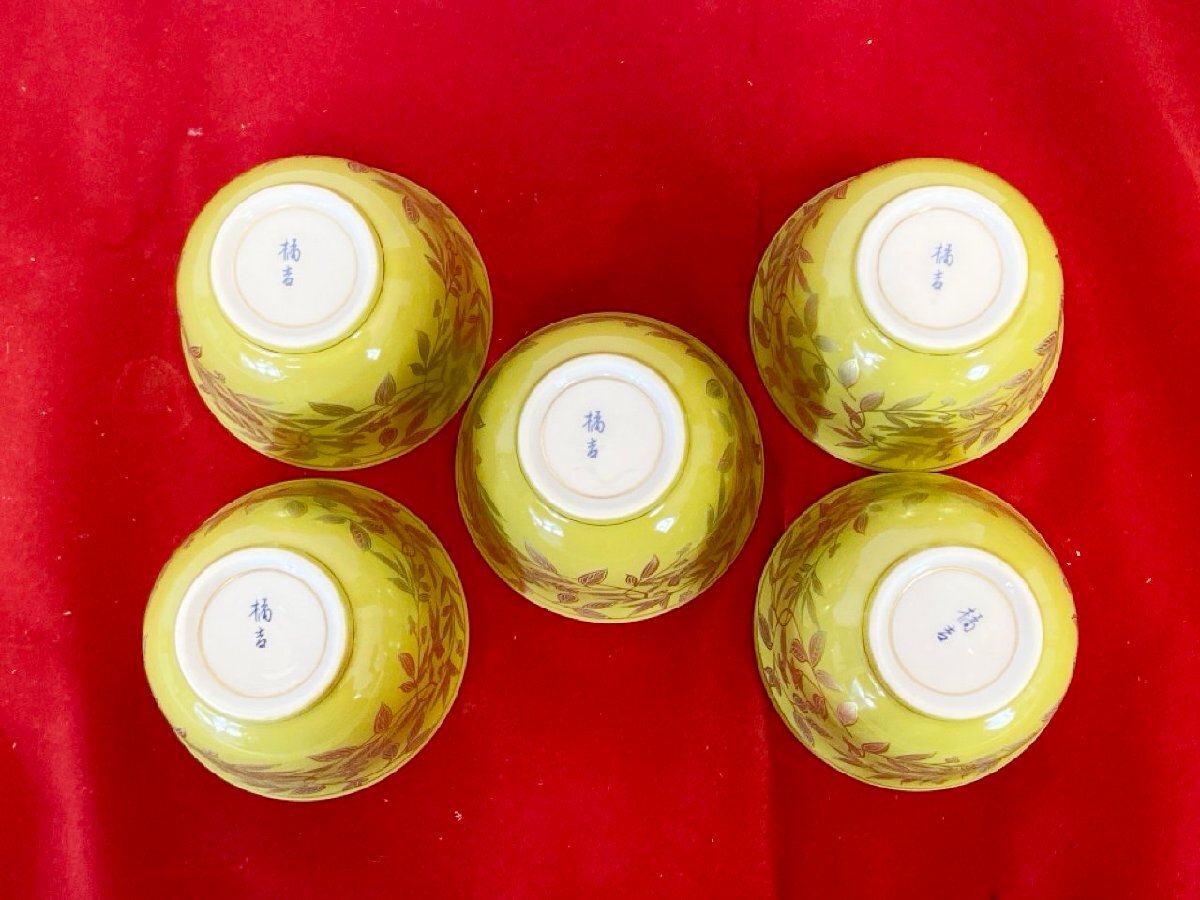 ◆たち吉 お茶呑茶碗 花化粧 茶器揃 萌葱金彩 まとめ売り セット 美濃焼 茶器