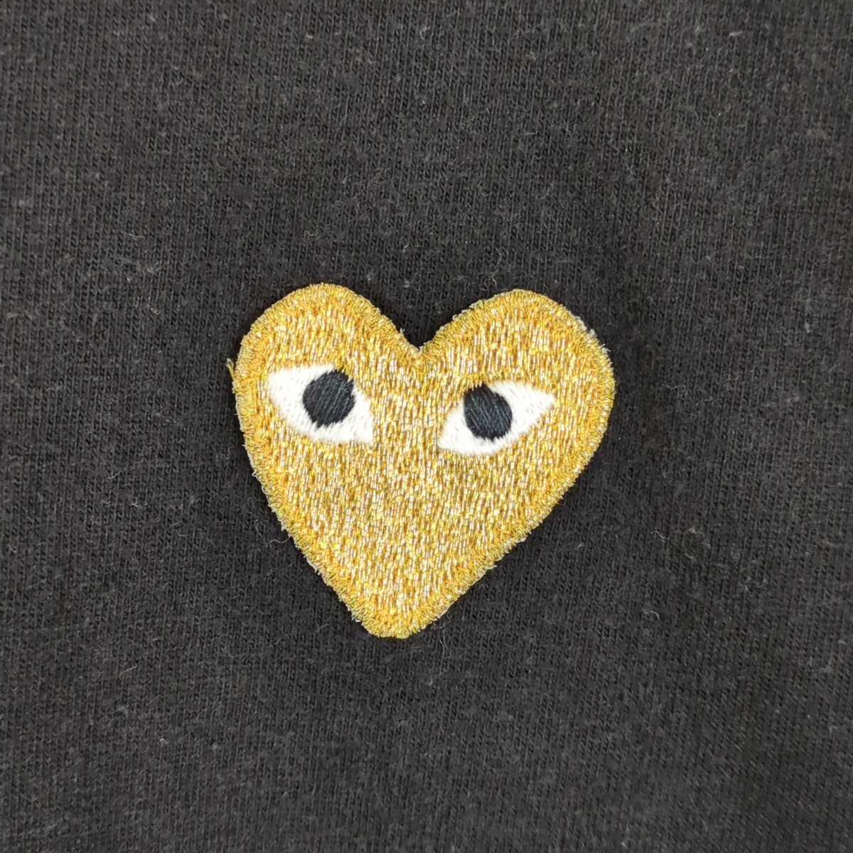 ・デザイン:ハートロゴ、刺繍ロゴ、ゴールドハート、金、半袖、丸首