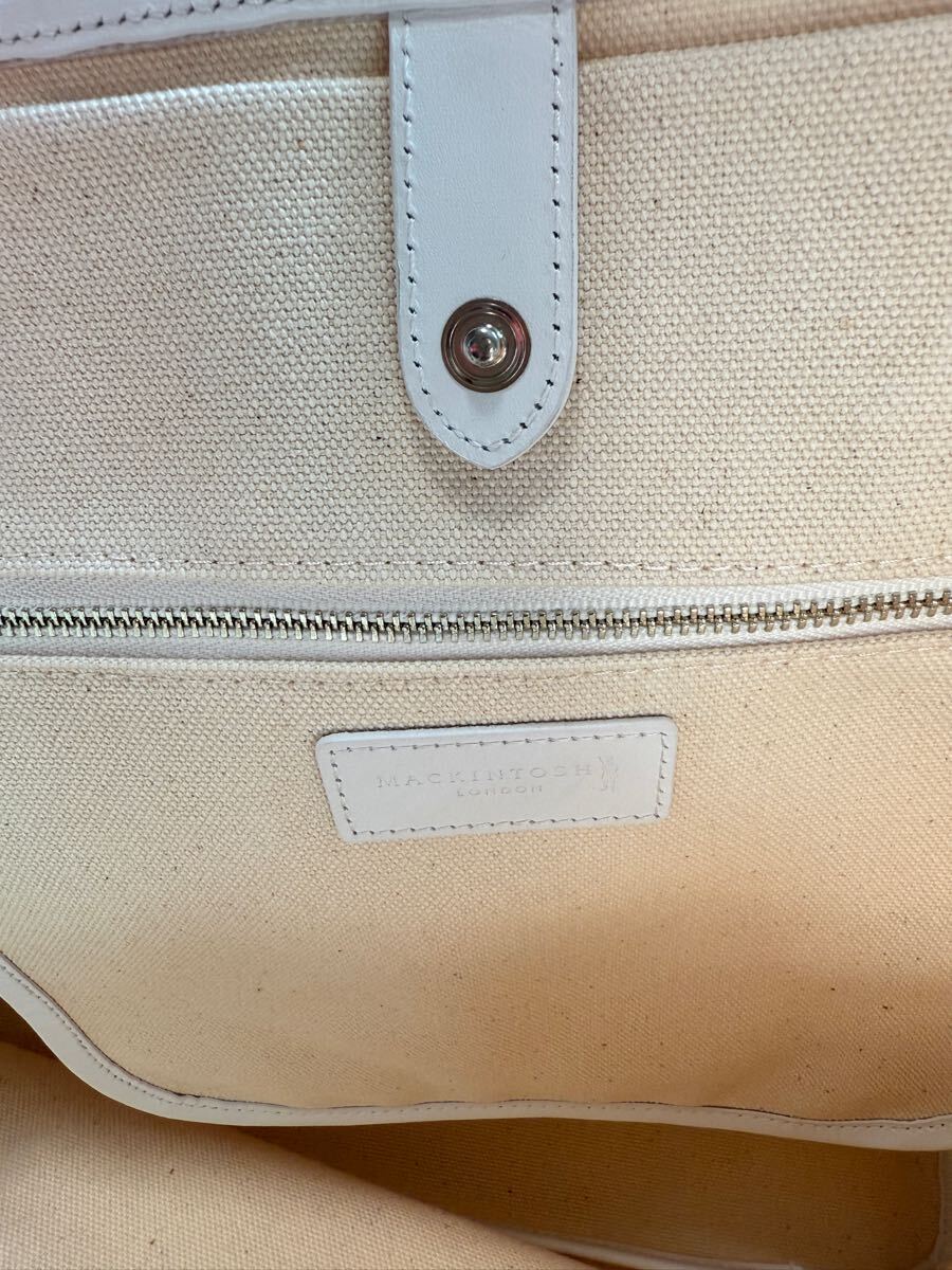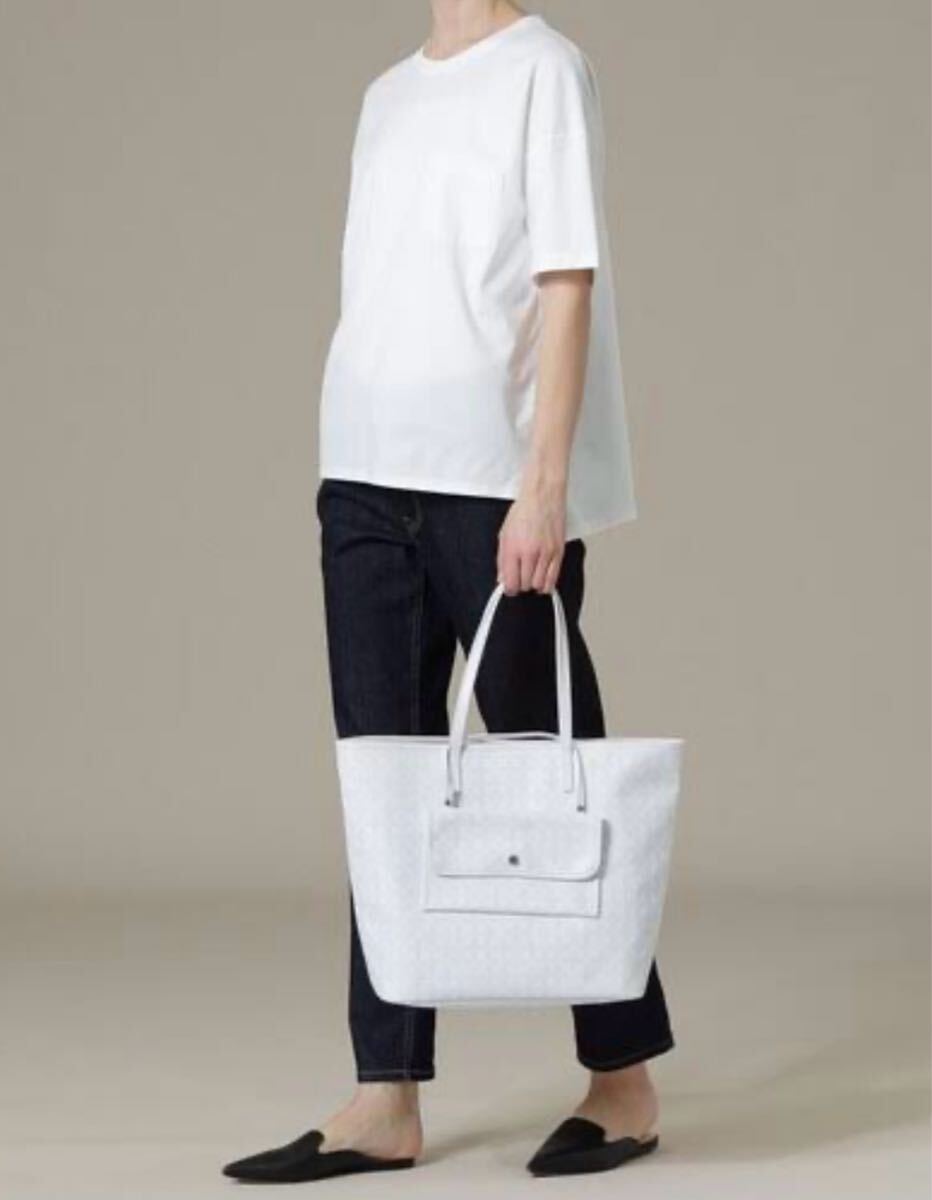 その他 厚手の帆布にマッキントッシュ ロンドンのアイコンであるアンドリュー柄をドットで表現したトート。職人が丹念にハンドプリントしています。コーティング加工を施しているので水や汚れに比較的強く、1枚仕立てで丈夫なのに軽量な仕上がりです。縦にも横にもA4サイズが入る新しいバランスで、吊りポケットや、取り外してミニバッグとしても使えるポーチが付いたりと、収納面も充実しています。ポーチ:高さ/12.5cm 横幅/22cm ひも長さ約34cm バッグ:長さ約44.5cm 高さひも含む約51cm マチ約15cm