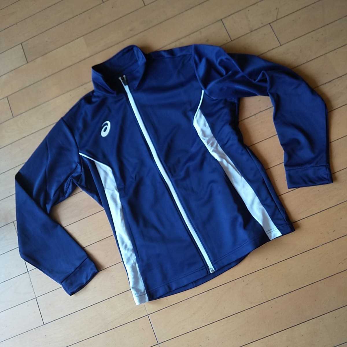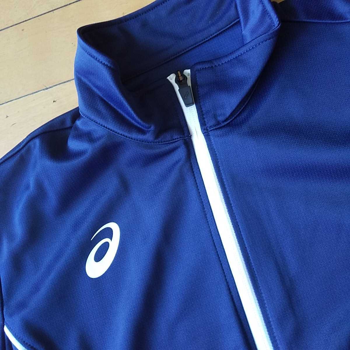 アシックストレーニングジャケットになります。紺なので合わせやすいと思います。サイズはMです。チェスト89~95センチです。他にもスポーツ服沢山出品中です。同梱可能です