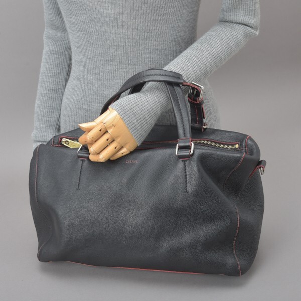 極美品 CELINE セリーヌ 2WAY ハンドバッグ ショルダーバッグ 本革 レザー ブラック イタリア製 ボストン 斜め掛け 鞄 /070227-33/b.f