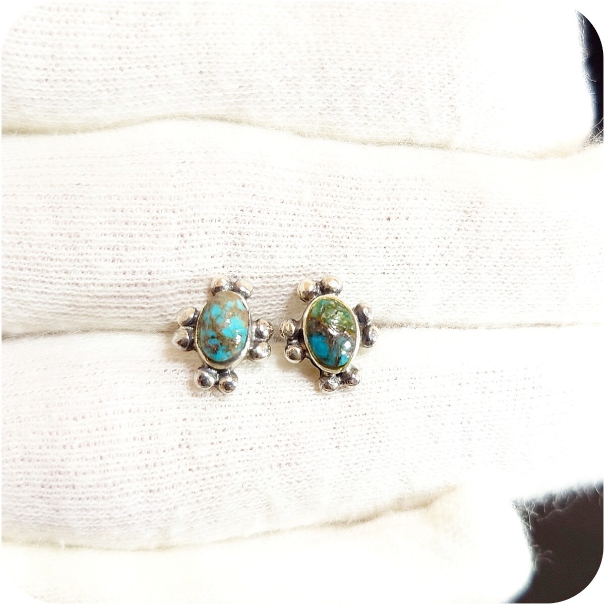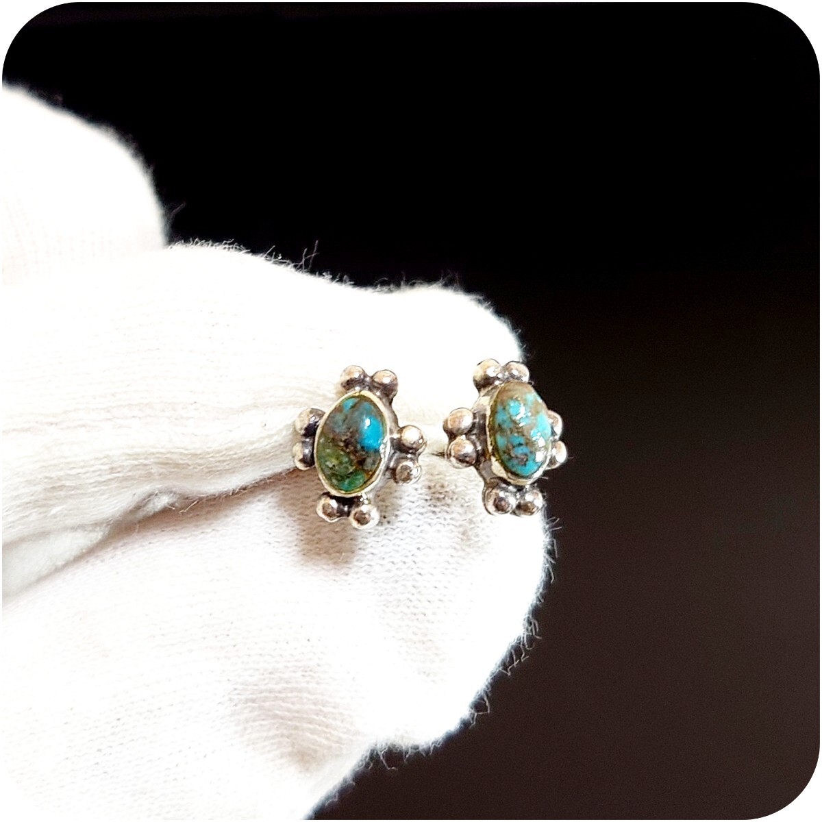 左右非対称なターコイズをセットしためちゃくちゃお洒落でカッコイイピアスです☆