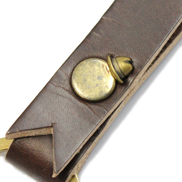 スペック | スナップ部分にオリジナルのハット型スタッズを被せてレザーの先端を蝶ネクタイをイメージした形にカット。 程良い厚さでハリのあるオイルドレザーを切り出し、金具は全てさりげない程度にアンティーク加工を施したブラスを使用。 |