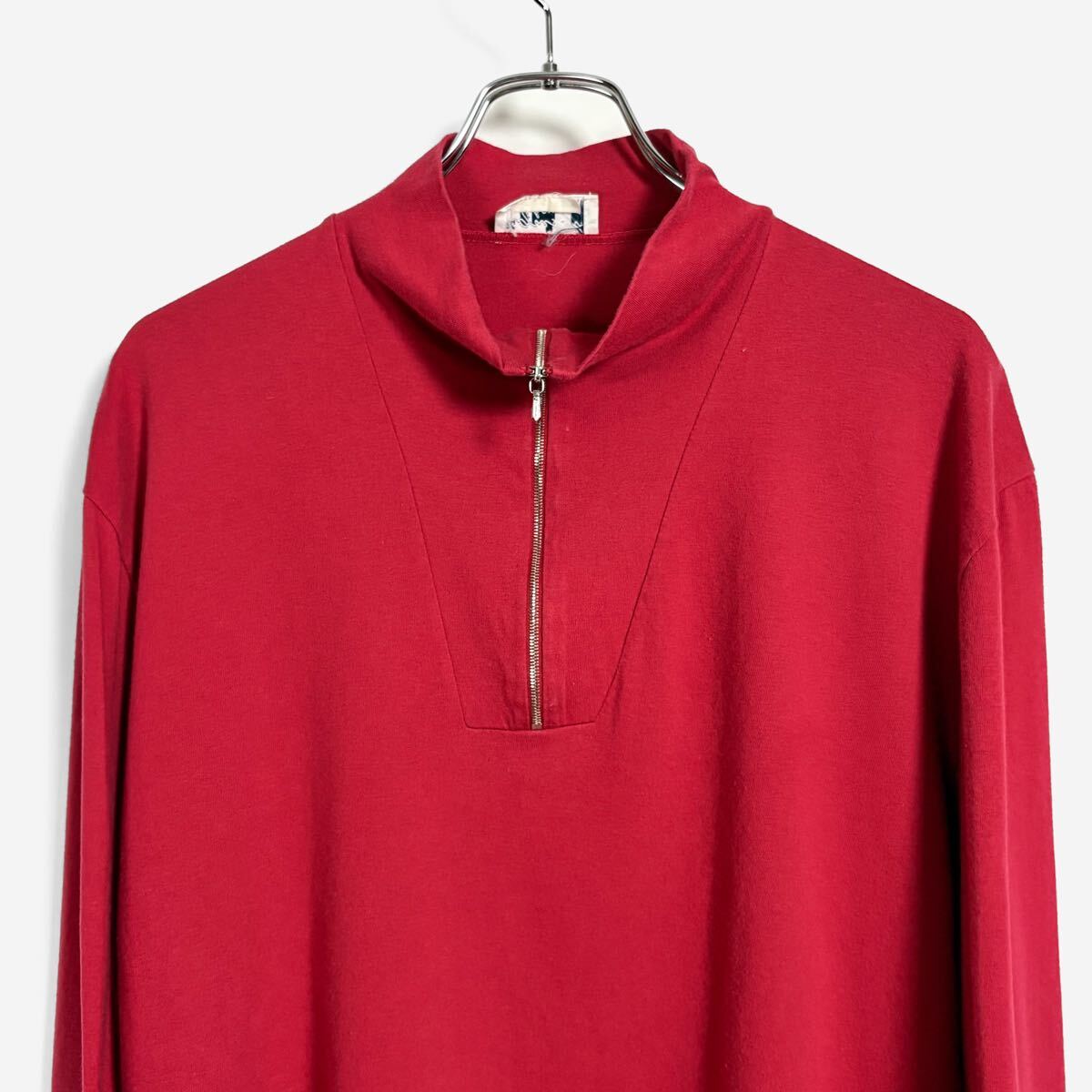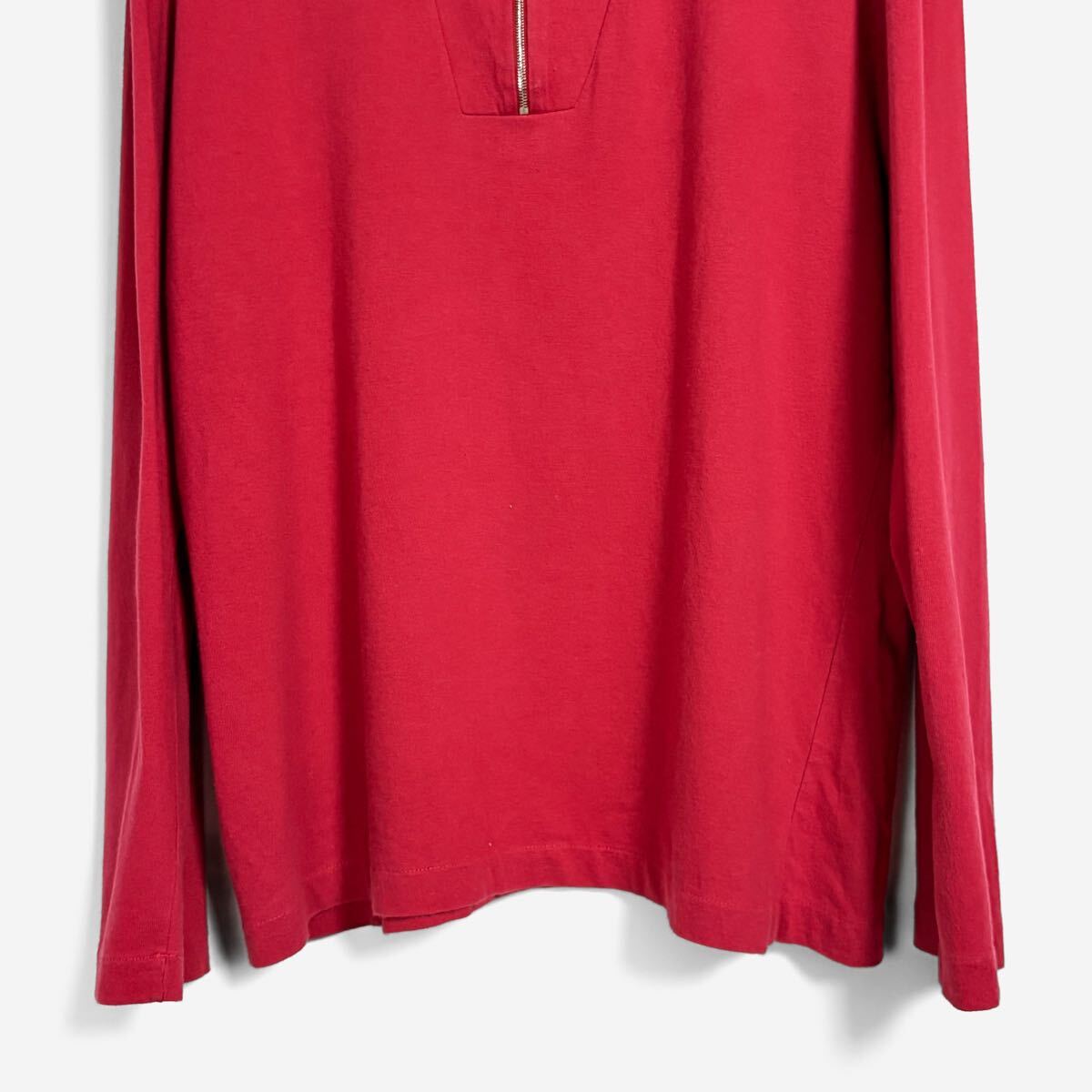 agns b.のモックネックハーフジップスウェットです。深みのある赤がどこかフレンチなムード。アクセントになったririジップは、静かな主張を添えるディテール。軽やかなコットン素材は、肌にすっと馴染む柔らかさ。ゆとりのあるシルエットとすっきりとした首元の対比も美しい。ラフだけど上品。そんなagns b.らしさを凝縮した一着。OUR LEGACYやCOMOLIの空気感が好きな方にもぜひ。