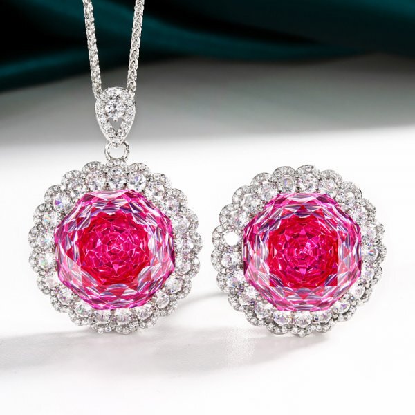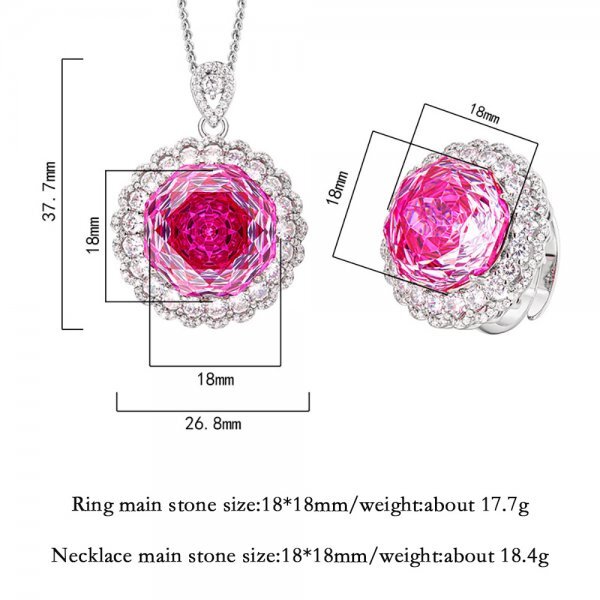 高級レトロ 18 mmピンククォーツジュエリーセット(ペンダントネックレス、リング)、女性のためのウェディングジュエリー、女性ギフト
