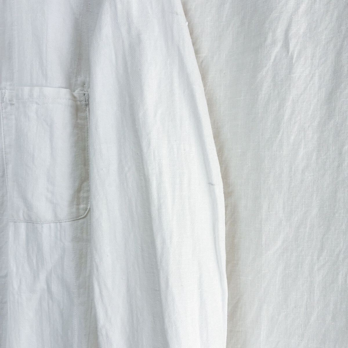 スタンダードカラー、素材は薄手のコットン生地になりサラッと羽織れる1着です。