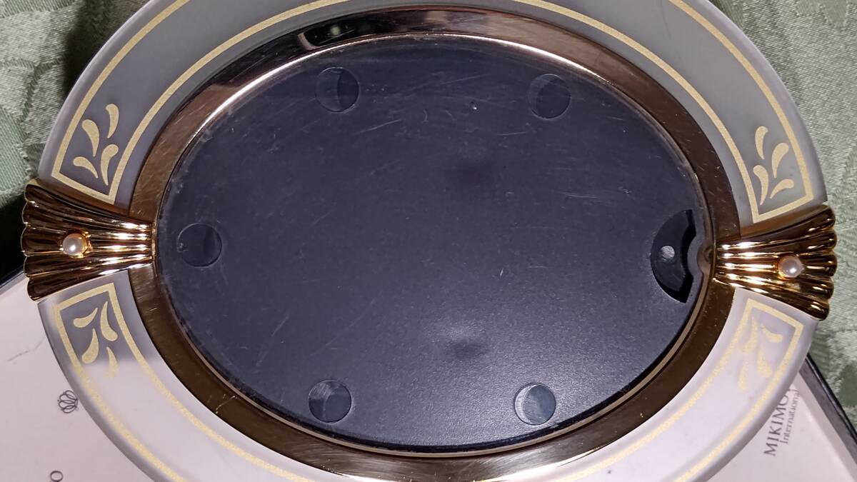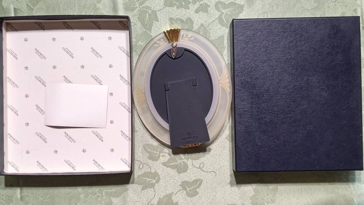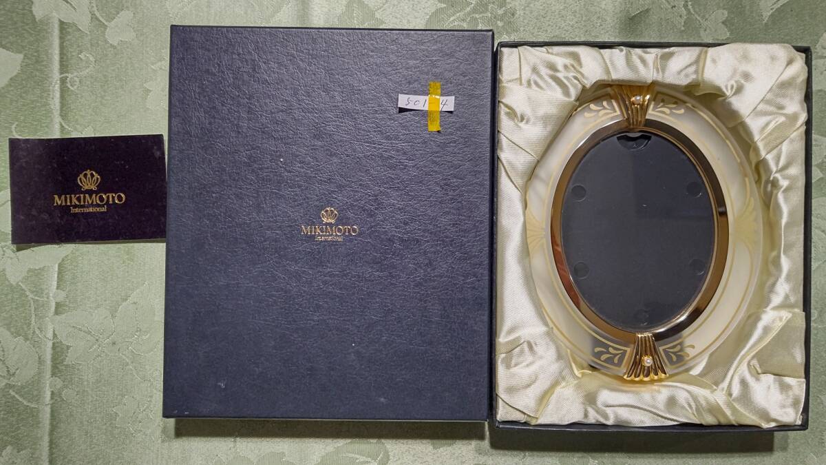 501-4 ミキモト フォトフレーム 外枠アクリル15×12.5㎝内枠ゴールド金属10.5×8㎝ オーバル(楕円)上下にパール付き ケース入り