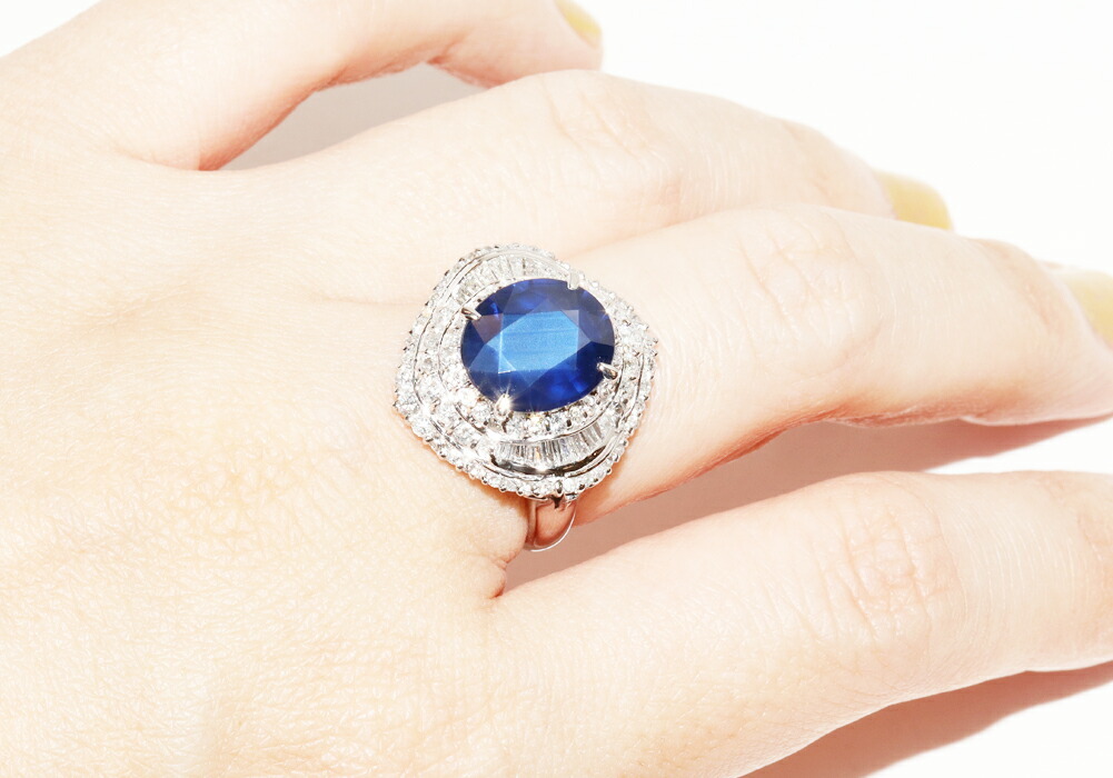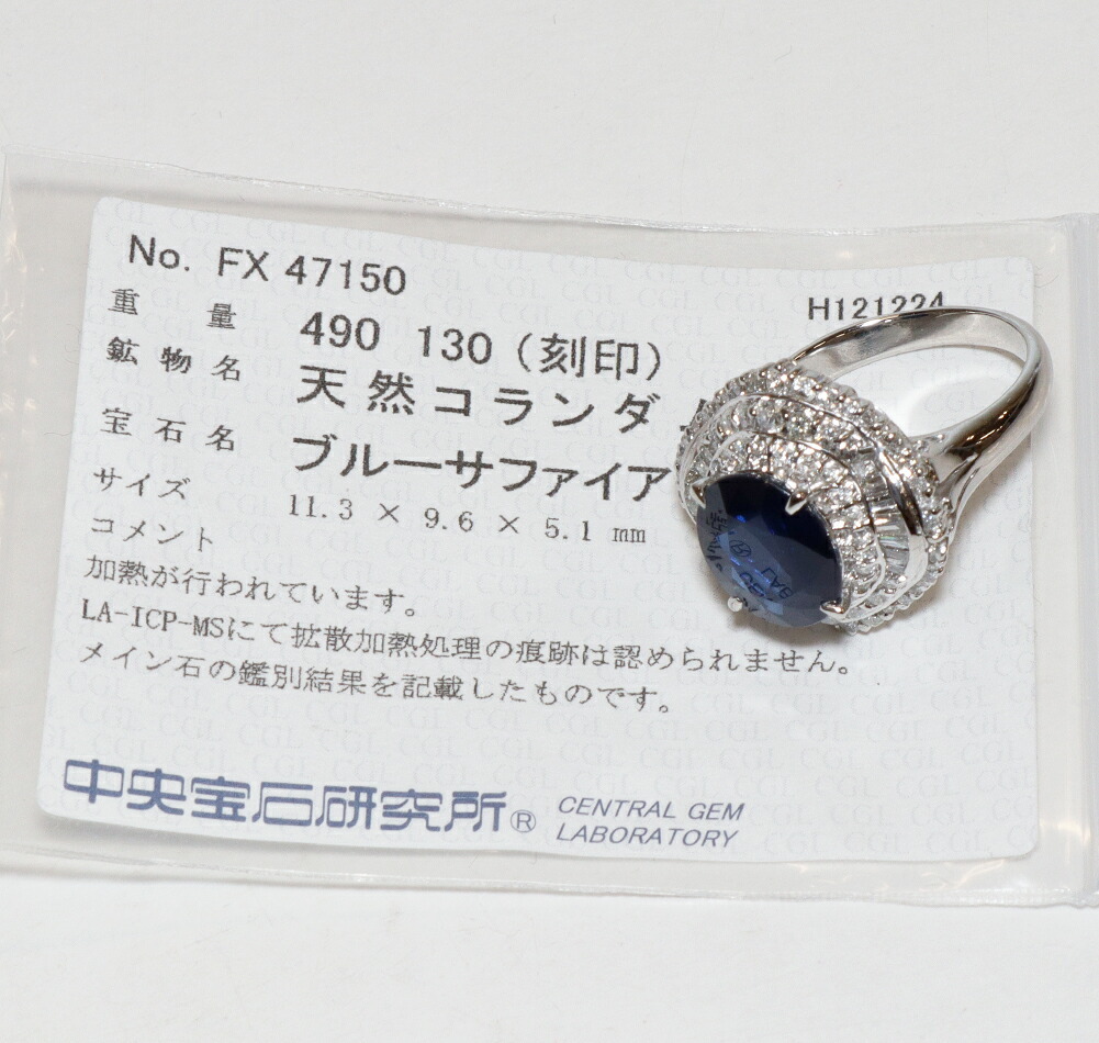 指輪 Pt900 サファイア4.90ct ダイヤ1.30ct