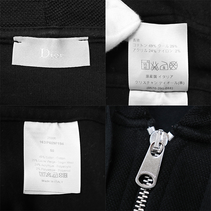 シリーズDior ディオール パーカー ニット 鹿の子 ロゴ BEE 蜂 エンブロイダリー 刺繍 ジップアップ フーディー 長袖 メンズ 50 黒 伊製