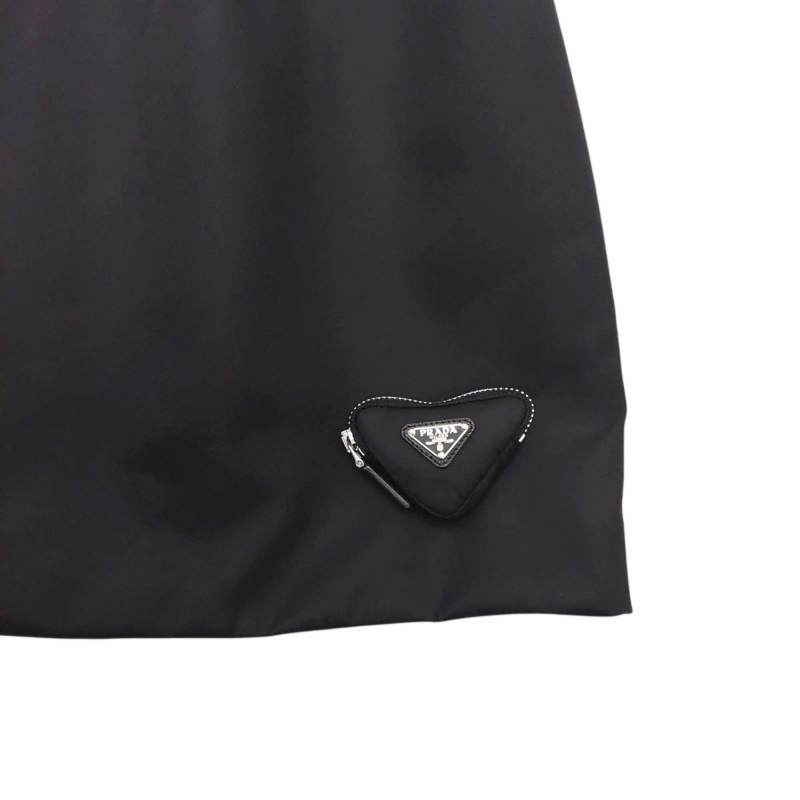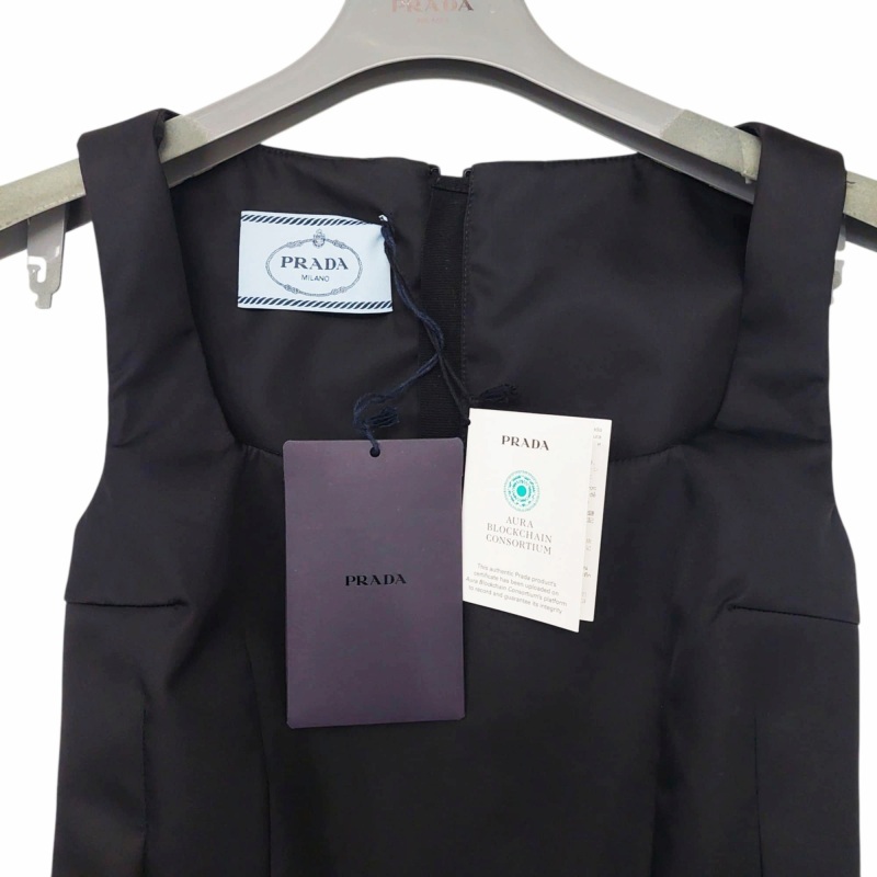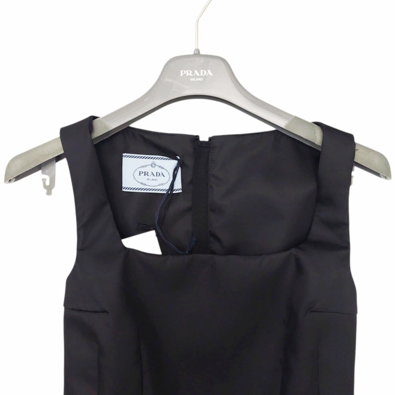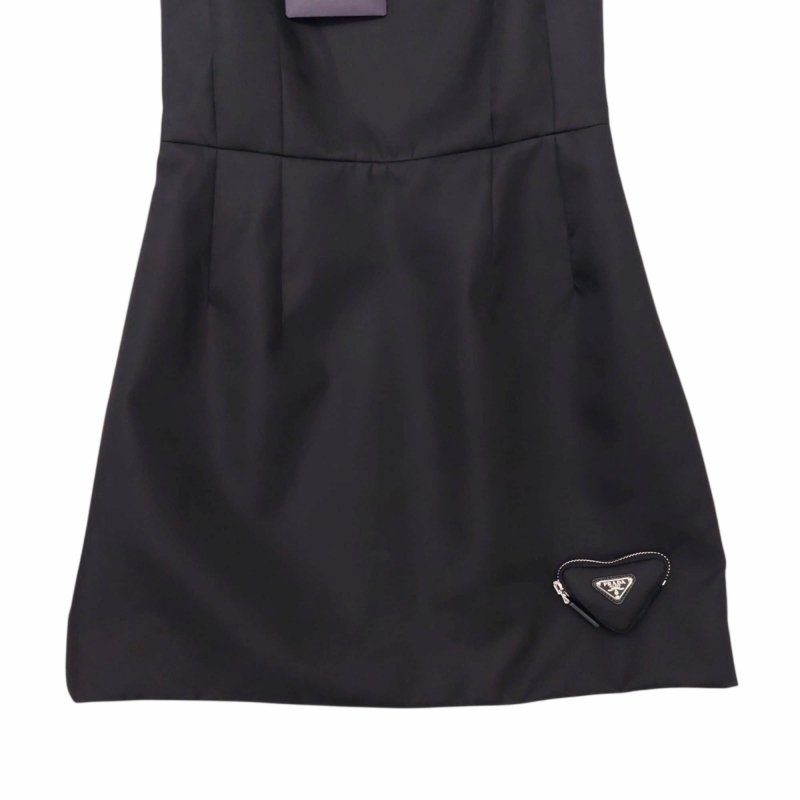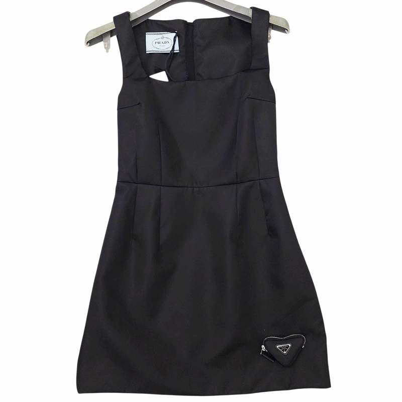 未使用品 プラダ PRADA タグ付き 24SS Re-Nylon ポーチ付 ノースリーブ ワンピース ドレス タイト 三角ロゴ 36 S 黒