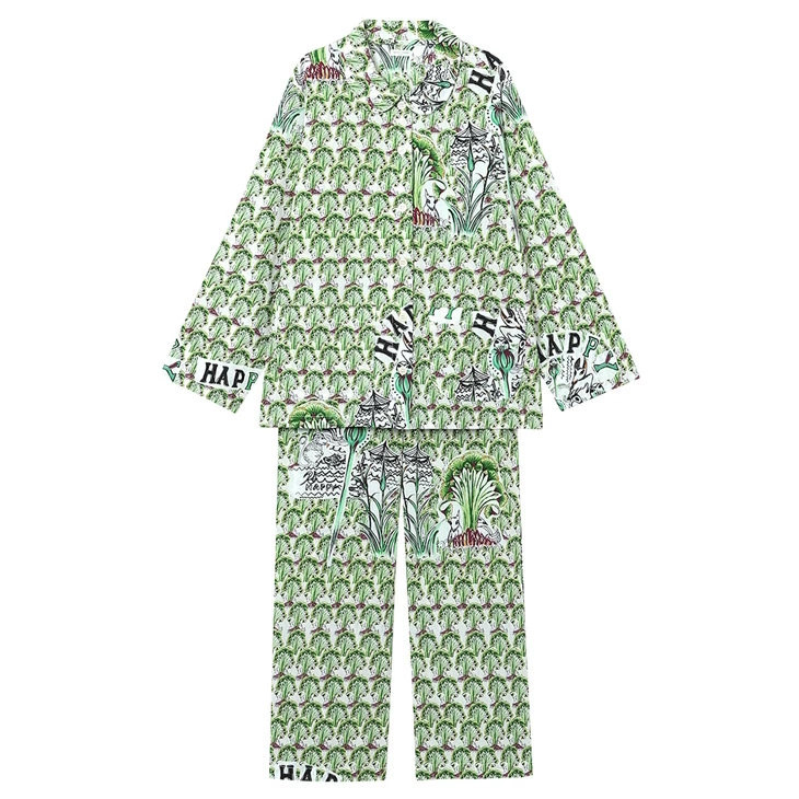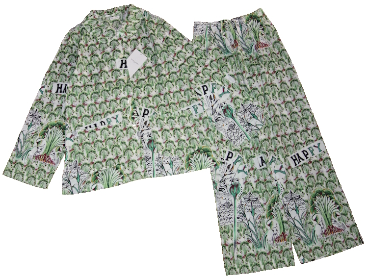 ツモリチサト★ワコール★長袖 パジャマ ルームウェア★Lサイズ★古代エジプト 砂漠の波状の風紋★綿100%素材★グリーン/GR